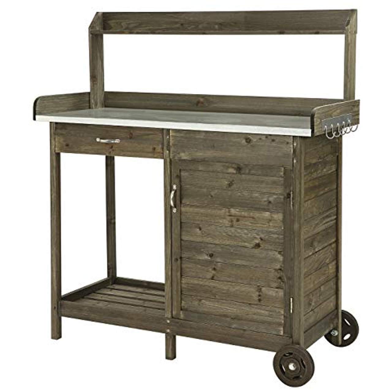 Dieser multifunktionale Tisch sorgt dafür, dass Gärtnerinnen und Gärtner Zugang zu reichlich Stauraum und Arbeitsflächen haben. Er bietet viel Platz für Gartengeräte und Grillutensilien und sorgt für einen organisierten Arbeitsplatz, der die Produktivität steigert und den Zeitaufwand für die Suche nach Gegenständen verringert. Das Design des Tisches trägt auch zum Komfort und zur Gesundheit des Nutzers bei, indem es ein rückenschonendes Arbeiten in bequemer Höhe ermöglicht. Dieses Merkmal bringt grundlegende ergonomische Prinzipien in die Gartenarbeit ein und reduziert die Belastung bei längerem Gebrauch.