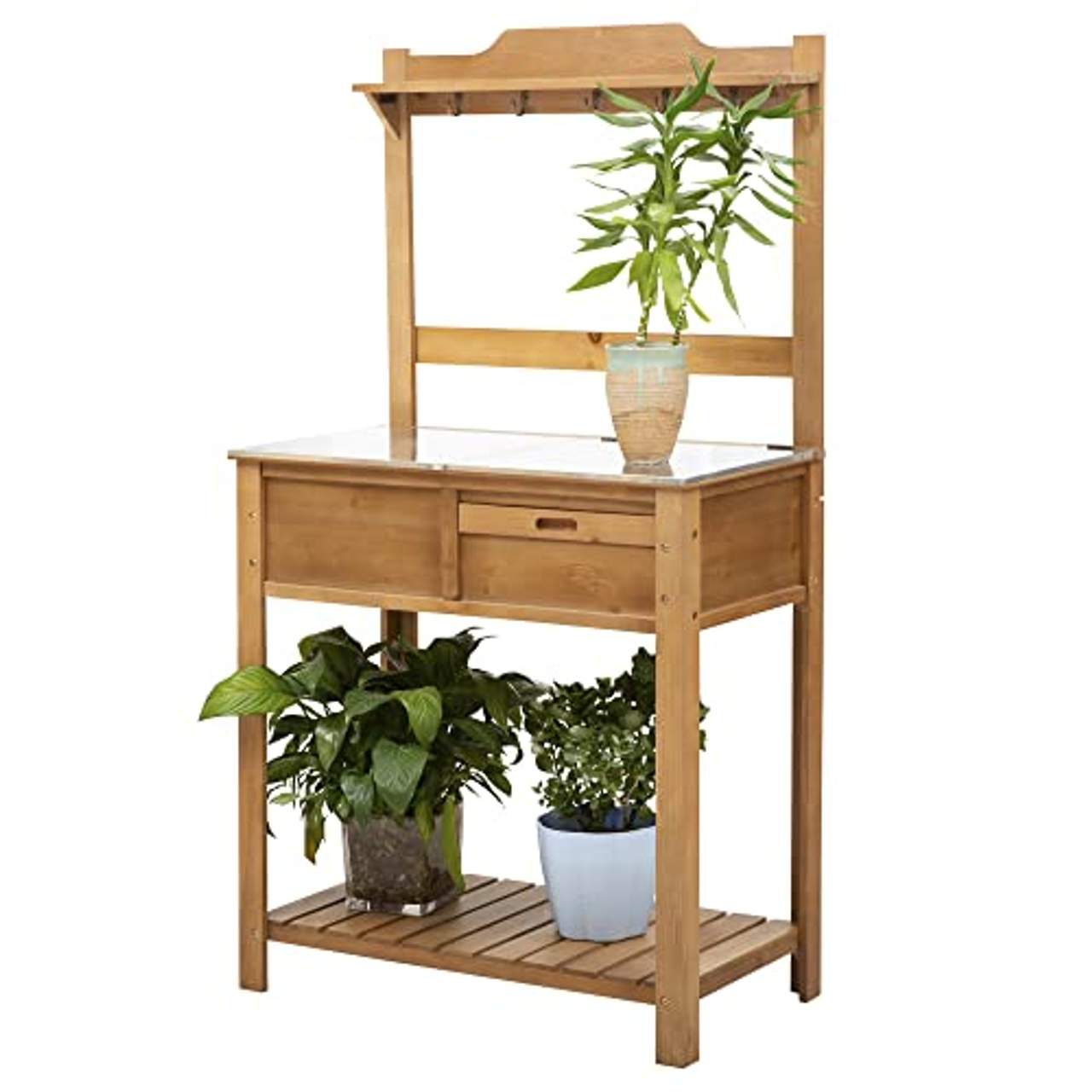 Über Outsunny Pflanztisch mit verzinkter Arbeitsplatte Gärtnertisch für Garten Terrasse