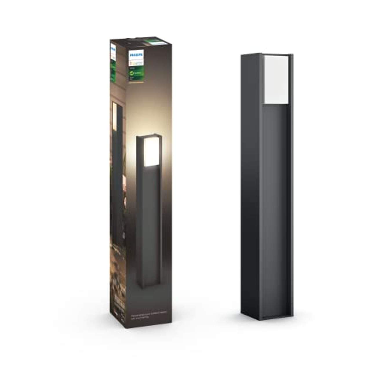 Philips Hue LED Wegeleuchte TuracoAutomatisieren Sie Ihre Lampen für einfache Steuerung und KomfortHue White Lampe enthaltenwarmweißes Licht (2.700 K)intelligente Steuerung via Hue Bridge**Hue Bridge separat erhältlichStellen Sie die Leuchten so ein, dass sie Sie willkommen heißenIhre Lichter schalten sich automatisch ein, wenn Sie nach Hause kommen, und automatisch aus, wenn Sie gehen. Laden Sie Ihr Auto aus und betreten Sie Ihr Haus mit der genau richtigen Beleuchtung.Stellen Sie die Hue App auf den Home- oder Away-Modus, um alle Ihre Lichter einzuschalten. Sie können sie auch auf Ihren Standort einstellen (via Anmeldung bei MyHue) - einfacher geht es nicht.Intelligente Steuerung, zuhause und unterwegsBeleuchten Sie Ihre Außenbereiche, um zu sehen, was draußen vor sich geht. Indem Sie Ihre Außenbeleuchtung mit der Hue Bridge verbinden, können Sie sie beliebig steuern. Verwenden Sie die Philips Hue-Innenschalter oder die Philips Hue App auf Ihrem Gerät.Sie können sogar Ihre Stimme verwenden (Amazon Alexa, Apple HomeKit oder Google Assistant), um Ihre Außenbeleuchtung zu bedienen. Legen Sie Lichtzeitpläne fest, um Ihre Anwesenheit vorzutäuschen. Steuern Sie Ihre Außenbeleuchtung entweder bequem von zuhause oder von einem beliebigen anderen Standort aus.Stellen Sie die Timer ganz nach Ihren Bedürfnissen einGenießen Sie lange Abende draußen, beenden Sie Ihre Gartenarbeit oder bringen Sie einfach spät Abends den Müll raus.Schalten Sie Ihre Beleuchtung über die Philips Hue App automatisch ein, indem Sie individuelle Zeitpläne einrichten oder die Beleuchtung nach Sonnenuntergang/-aufgang ausrichten. Auf die gleiche Art und Weise können Sie die Beleuchtung auch ausschalten oder dimmen. Sie müssen sich nie wieder darüber Gedanken machen, ob Sie das Licht angelassen haben oder nicht.Dimmen ohne InstallationErleben Sie garantiert einfaches Dimmen mit Philips Hue.Nicht zu hell. Nicht zu dunkel. Einfach genau richtig. Kabel, Elektriker und Installation sind zum Dimmen Ihrer Beleuchtung nicht nötig.Steuerung nach BeliebenNoch nie war die Steuerung Ihrer Außenbeleuchtung so einfach: Steuern Sie Ihre Beleuchtung über Ihr Smartphone oder Tablet mit der Philips Hue App, oder fügen Sie Innenschalter zu Ihrem System hinzu, um Ihre Leuchten zu steuern.Programmieren Sie Timer, Benachrichtigungen, Alarme und vieles mehr. Philips Hue funktioniert sogar mit Amazon Alexa, Apple HomeKit und Google Assistant, so dass Sie Ihre Beleuchtung per Sprachsteuerung anpassen können.Wetterfest (IP44)Diese Philips Außenleuchte wurde speziell für Umgebungen im Freien entworfen und strengen Tests unterzogen, die ihre Leistung gewährleisten. Die IP-Stufe wird durch zwei Ziffern festgelegt: die erste bezieht sich auf die Schutzstufe gegen Staub, die zweite auf die Schutzstufe gegen Wasser.Diese Leuchte verfügt über die Schutzart IP44, d. h. sie ist gegen Spritzwasser aus allen Richtungen geschützt und eignet sich perfekt für Außenbereiche.Erfordert eine Philips Hue BridgeVerbinden Sie Ihre Philips Hue Lampen mit der Bridge, um Ihre Beleuchtung über Ihr Smartphone oder Tablet mit der Philips Hue App zu steuern.Sobald die Leuchten in Ihr Hue System eingebunden sind, können Sie sie auch mithilde der weiteren Steuerungsmöglichkeiten für Philips Hue steuern, z.B. via Dimmschalter oder Sprachsteuerung.Qualitativ hochwertiges MaterialDie Produkte sind speziell für den Einsatz in Außenbereichen entwickelt.Wir verwenden die hochwertigsten Materialien, um die beste Leistung in Außenbereichen zu gewährleisten. Außerdem setzen wir die Materialien intelligent ein, um die elektromagnetische Verträglichkeit zu optimieren.