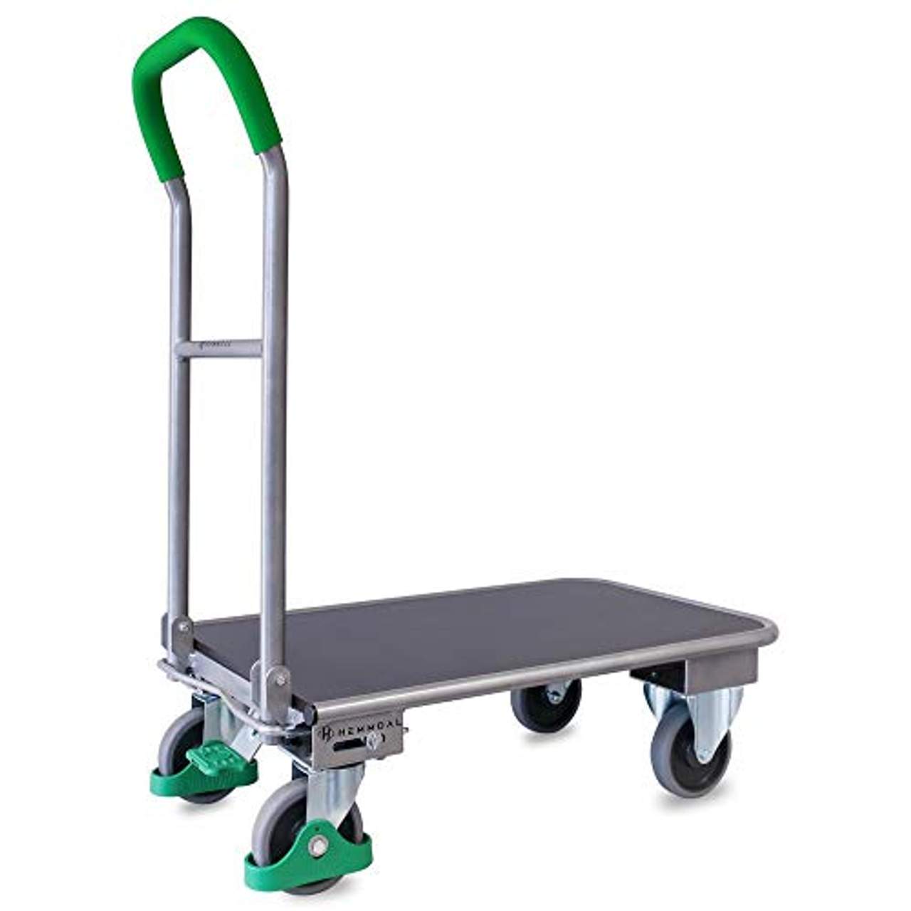 Der Hemmdal PRO Transportwagen Faltbar ist ein faltbarer Plattformwagen mit einer Ladefläche von 45 x 72 cm. Er verfügt über eine ergonomische Griffstange mit weicher Gummibeschichtung für eine komfortable Bedienung, auch beim Transport schwerer Gegenstände mit einem Gewicht von bis zu 150 kg. Außerdem verfügt er über zwei Lenkräder mit EasySTOP-Bremssystem und zentraler Bremse für schnelles Anhalten und Feststellen sowie einen Fußschutz für die Sicherheit bei der Benutzung. Der Rahmen ist aus pulverbeschichtetem Stahl gefertigt und dadurch besonders stabil, langlebig und wackelfrei. Er lässt sich mit dem Fußschalter leicht zusammenklappen und in jedem Lager oder Büro verstauen.