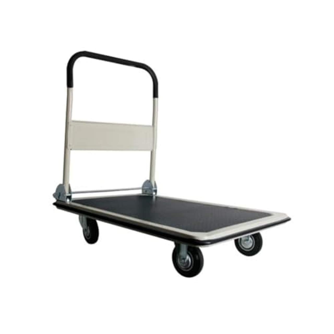Toolland OHT300 Plattformwagen 91 cm x 61 cm AbmessungenDieser Plattformwagen von Toolland eignet sich perfekt für den Transport schwerer Gegenstände in Werkstätten, Hotels oder Lagern. Dieser Plattformwagen ist äußerst langlebig und strapazierfähig mit einem maximalen Nutzlast von 300 kg. Er kann leicht zusammengeklappt werden, um bei Nichtgebrach Platz zu sparen.Der Handwagen ist mit 2 Schwenkrädern und 2 festen Rädern ausgestattet, die einen reibungslosen Transport gewährleisten. Zusätzlich schützt die Gummimatte Ihre Sachen vor dem Herunterfallen. Spezifikationen: Farbe: Schwarz und Weiß Material: Stahl Maße (zusammengeklappt): 91 x 61 x 27 cm (L x B x H) Abmessungen (geöffnet): 91 x 61 x 87 cm (L x B x H) Raddurchmesser: 12,5 cm Mindestbruchlast: 300 kg Sicherheitsfaktor: 1/2 Normale Lastenbefördeung: 150 kg Gummimatte Mit 2 festen Rollen und 2 schwenkbaren Rädern Griff mit weichem Schaumstoffschutz SKU: 432607