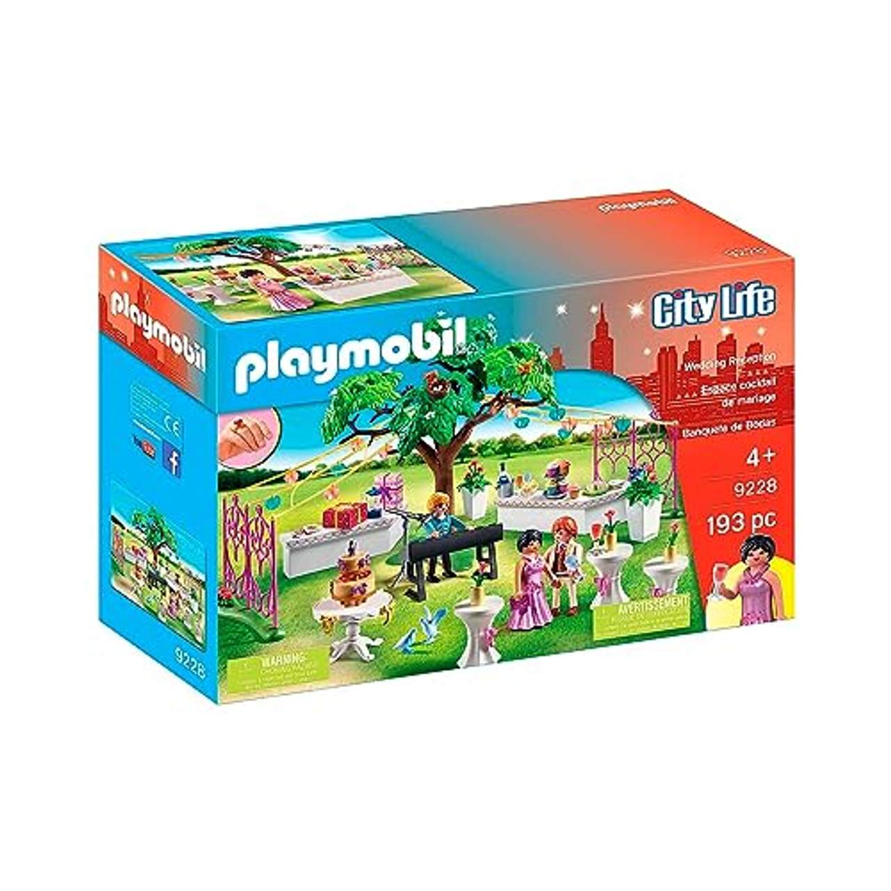 Das PLAYMOBIL City Life! (Mädchen) „Playmobil 9228 Hochzeitsparty“ ist ein Hochzeitsthemenset, das drei Figuren, die Braut, den Bräutigam und einen Partygast enthält. Außerdem gibt es sieben Tiere und viel Zubehör wie Girlanden mit Laternen, einen Tisch, ein Klavier, ein Mikrofon, eine Torte und Geschenke. Ein niedlicher Fingerring mit Herzen zum selbst Tragen ist ebenfalls enthalten. Dieses Set verspricht eine lustige und unvergessliche Feier für alle Gäste!