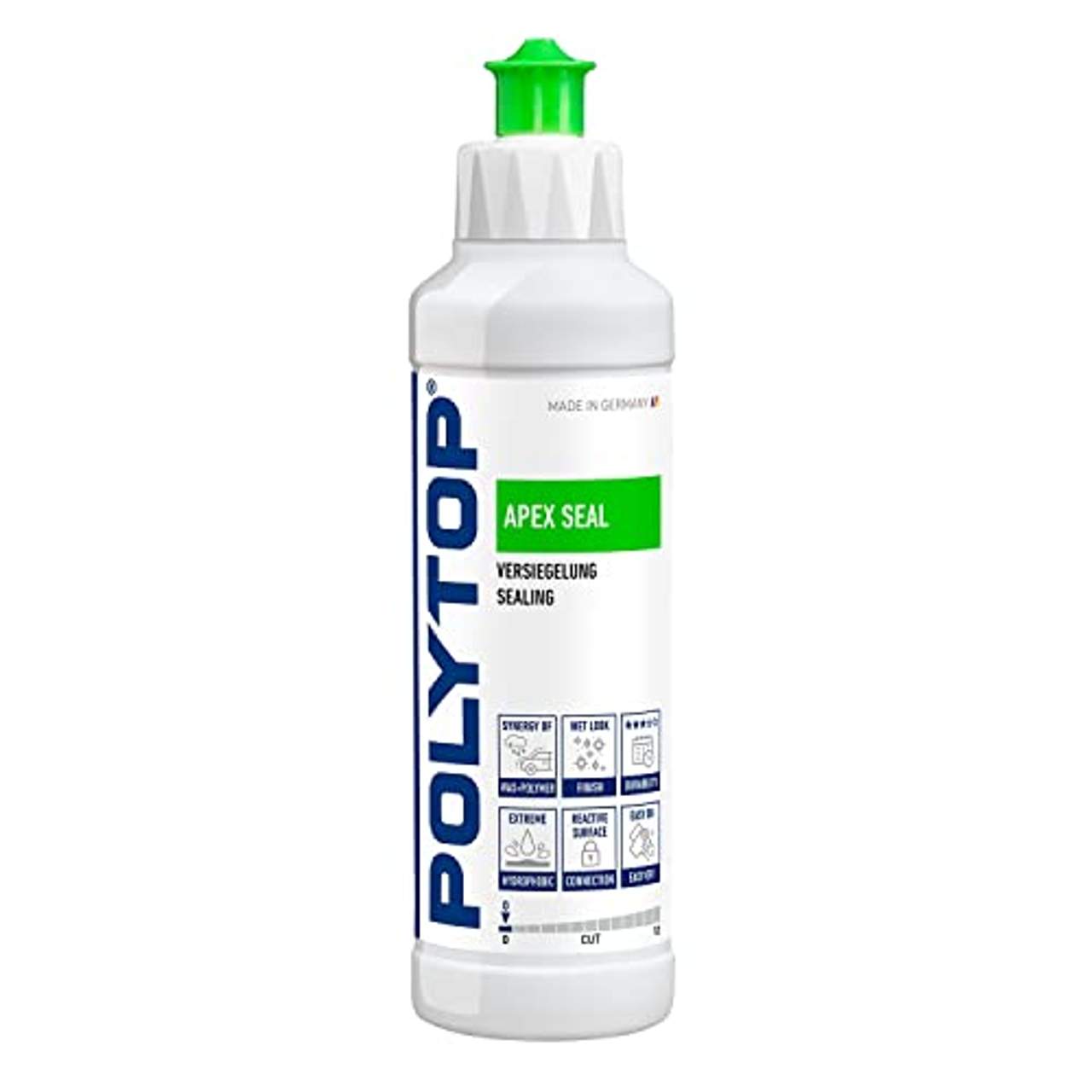 Polytop Apex Seal Langzeitversiegelung VersiegelungApex Seal ist eine extrem leicht zu verarbeitende Versiegelung mit einer Kombination von natürlichem Carnaubawachs und synthetischen Wachsen. Die enthaltenen Polymere gehen eine reaktive Verbindung mit der Lackoberfläche ein und erhöhen so die Standzeit. Das Ergebnis ist ein beeindruckender Wet-Look-Tiefenglanz und langanhaltender Abperleffekt.Zwölf Stunden nach der Verarbeitung ist der maximale Versiegelungsgrad erreicht.