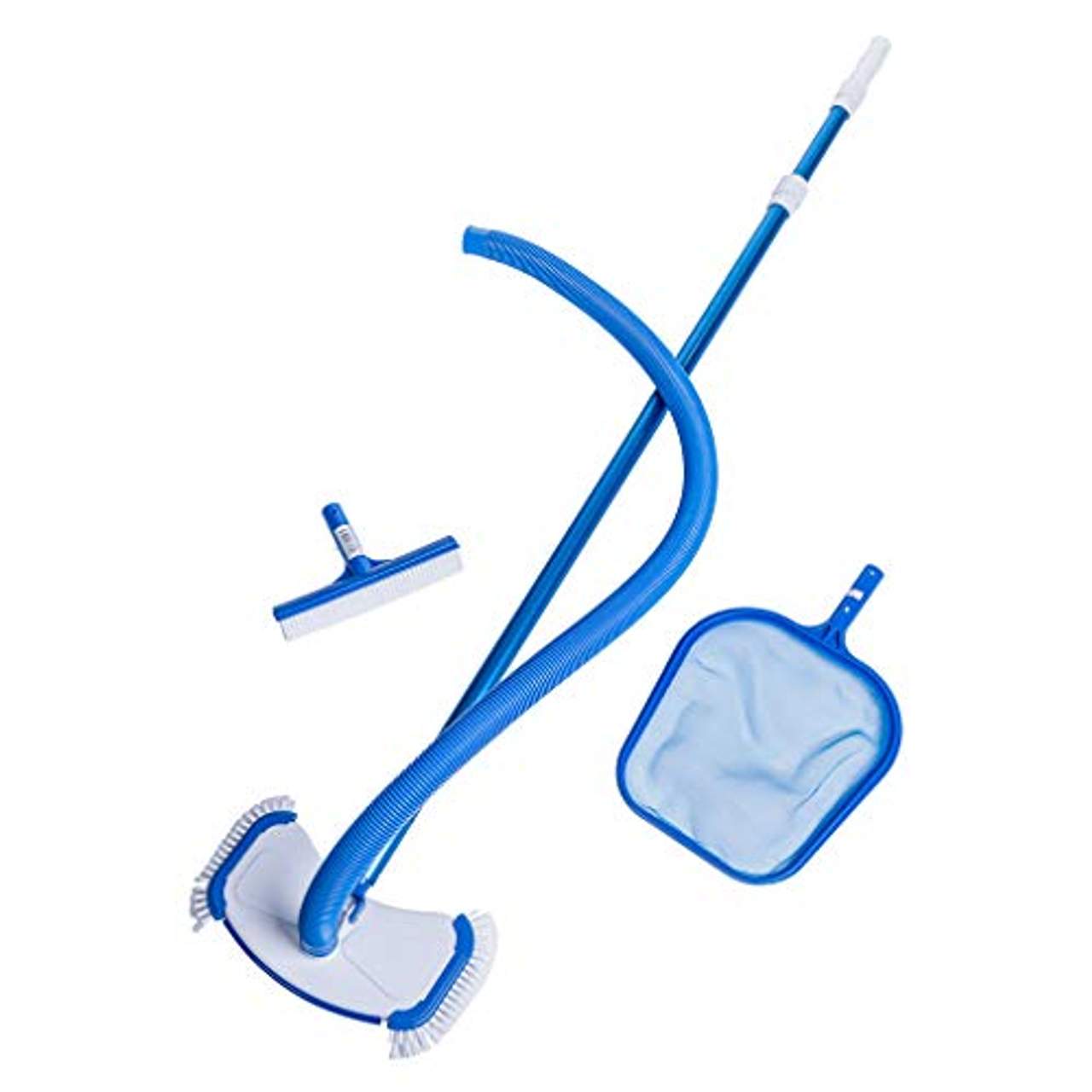 - Umfassende Reinigung: Das Reinigungsset enthält eine Bodensaugerbürste De Luxe mit Seitenborsten, ein Laubnetz und eine Randreinigungsbürste für eine umfassende Reinigung der Pooloberfläche.