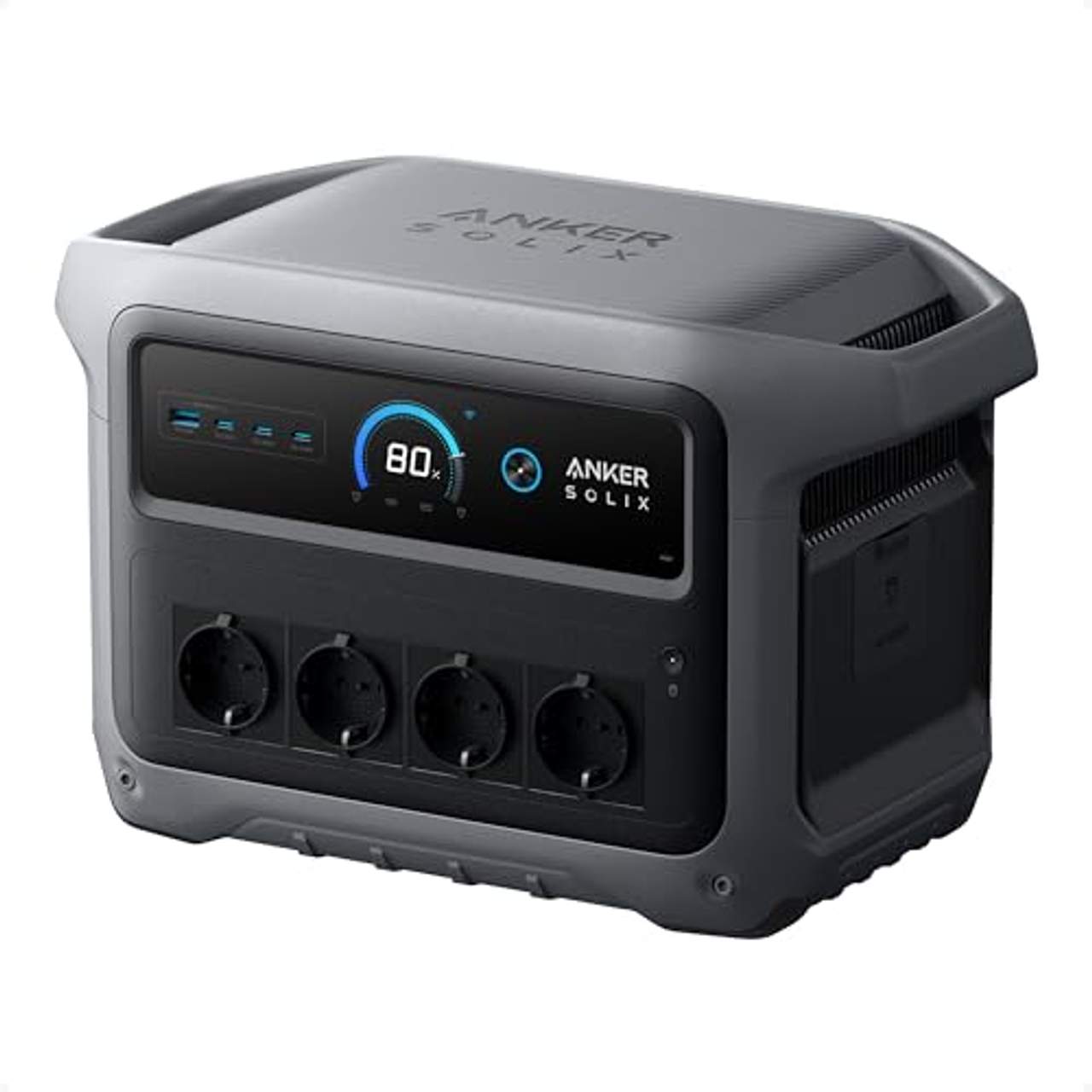 Anker Solix C1000 Gen 2 Tragbare Powerstation49 Min UltraFast Recharging: HyperFlash lädt die C1000 Gen 2 in nur 49 Minuten mit 1.600W Leistung – einfach über die Anker App aktivieren. 2.000W Ausgangsleistung über 9 Ports: 2.000W Dauerleistung, 3.000W Spitzenleistung und 1.024Wh Kapazität – genug Leistung für bis zu 9 Geräte gleichzeitig. Kompakt und mobil: Die C1000 Gen 2 ist 14% kleiner und 11% leichter als ähnliche Modelle. So lässt sie sich einfach tragen, verstauen und überall mitnehmen. 10 Jahre InfiniPower: Für ein Jahrzehnt täglicher Nutzung entwickelt – selbst nach 4.000 Ladezyklen bleibt mindestens 80 % der Akkukapazität erhalten. 1,8 Std Solaraufladung: Bis zu 600W Solarenergie (max. 60V) laden die Powerstation in 1,8 Stunden auf und sorgen so für eine autarke und nachhaltige Energieversorgung. 10ms UPS‑Backup: Wichtige Geräte wie CPAP‑Maschinen oder Laptops bleiben auch bei Stromausfällen aktiv. Die automatische Umschaltung unter 10ms sorgt für stabile Versorgung. Intelligentes Energiemanagement: Im TOU‑Modus steuerst, überwachst und planst du deinen Energieverbrauch, teure Lastspitzen vermeidest du bequem per App.