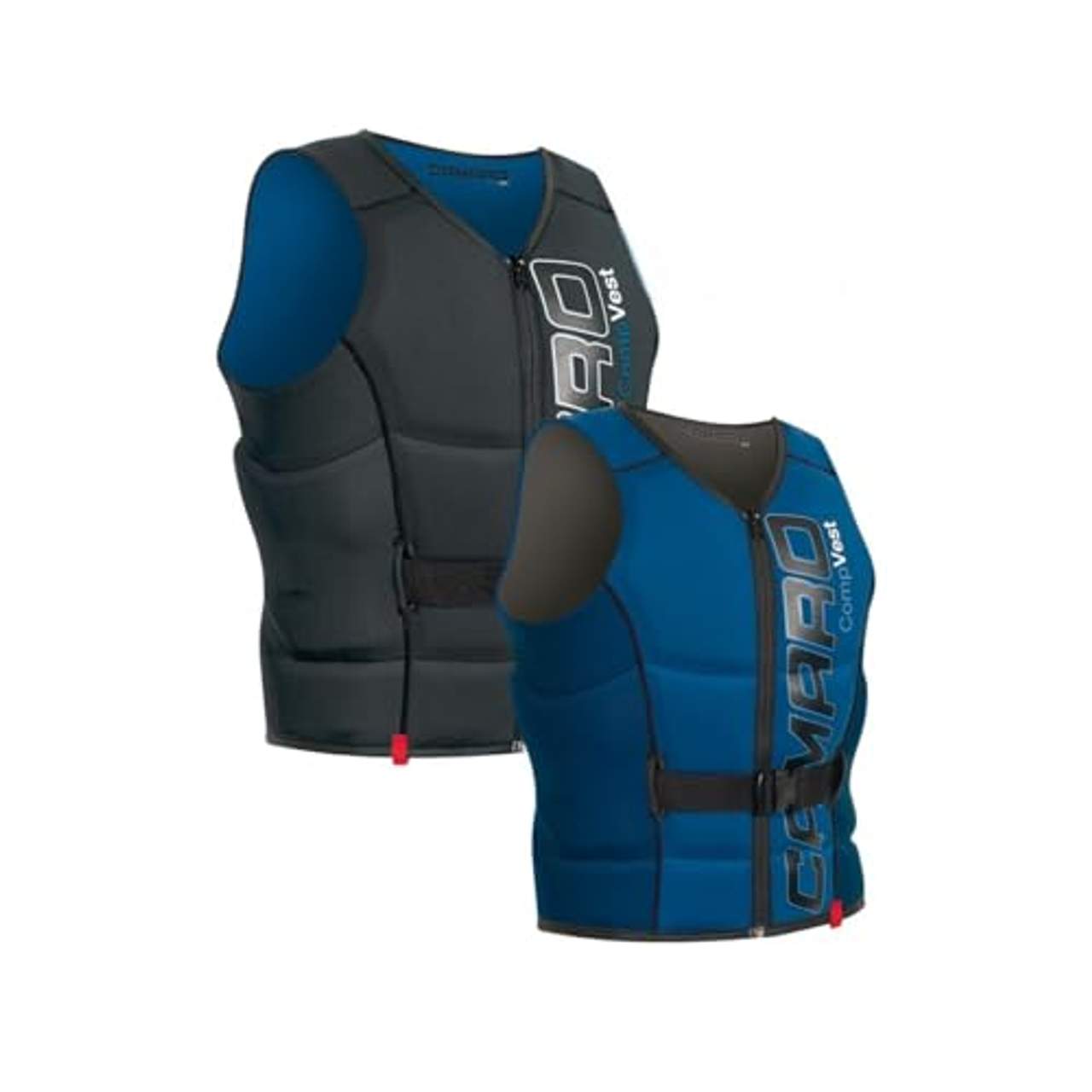 Camaro Comp Slasher Neopren Prallschutz Oberteil WakeboardCOMP VEST - 100% BEWEGUNGSFREIHEIT 3-JAHRE GRATIS REPARATURSERVICE…weltweit einzigartig! 3 Jahre kostenfreie Reparatur ab Kaufdatum - nach Einsendung des Produktes und Vorlage des Kaufbeleges wird das Produkt kostenlos repariert. Das gesetzliche Gewährleistungsrecht für Verbraucher (Mängelhaftung) wird hierdurch nicht eingeschränkt - Hinweis: Weste fällt 1-2 Nummern kleiner aus - Beachten Sie daher unbedingt die Größentabelle - Super elastisches Neopren 100% super Stretch - WENDEWESTEN - beidseitig zu tragen! Black oder Blue - Meistverkaufte Neoprenweste - Extrem leicht und super elastisch! - Neue, überarbeitete Schnittform, verbesserte Passform - Protektoren im Front-, Schulter-, Rücken und Seitenbereich - Super leicht, ab 800 Gramm - Ideale Prallschutz Weste für Wasserski.-, Windsurf…