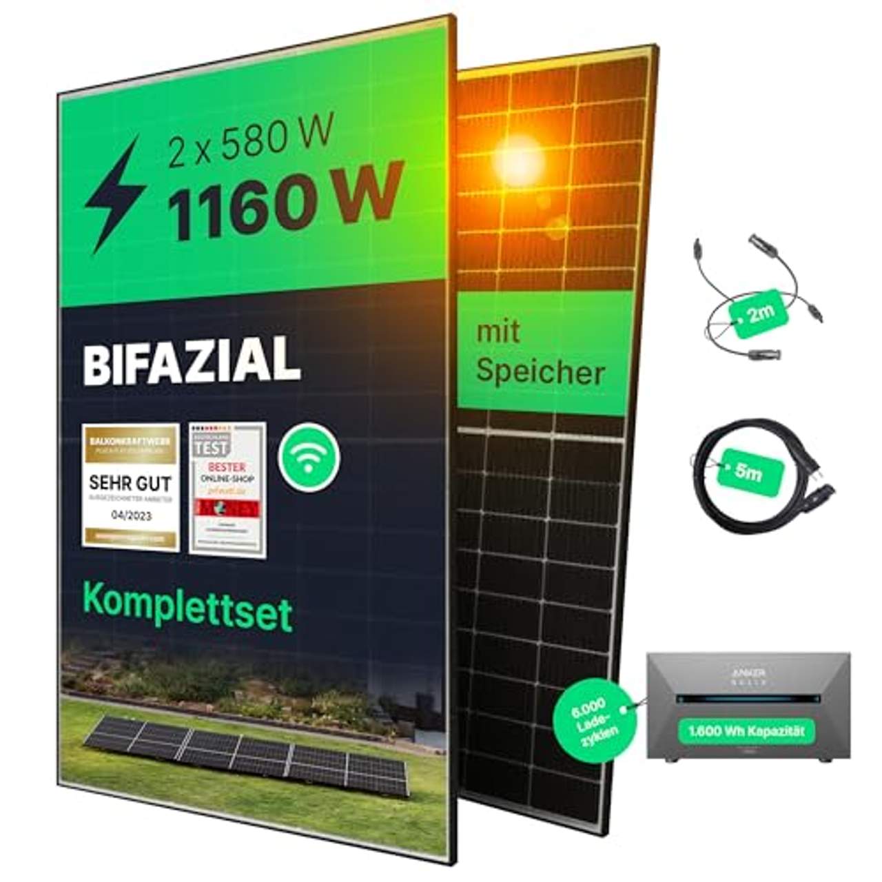 | Modulleistung Solarpanel | 1.160 Watt (2 x 580 Watt bifaziales Solarmodul in Black Frame) |