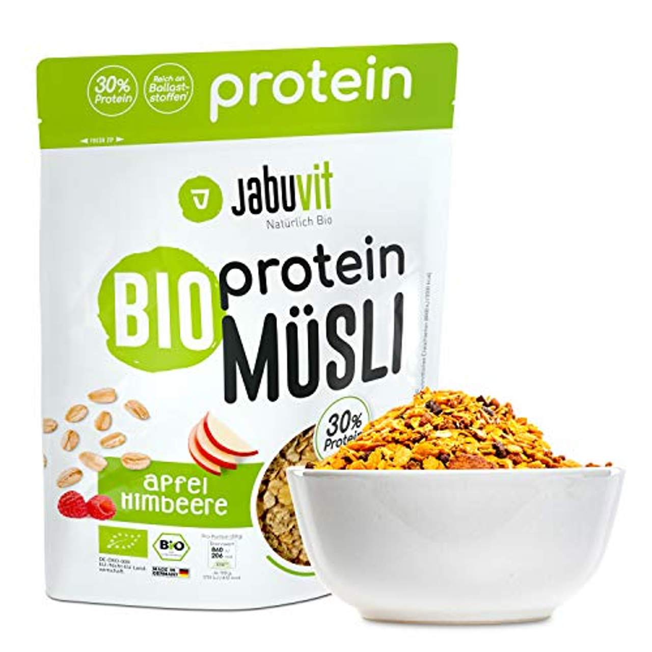 - Hoher Proteingehalt: Das JabuVit Bio-Müsli mit niedrigem Zuckergehalt versorgt Ihren Körper mit 30 % Eiweiß aus natürlichen Quellen und ist damit ideal für Sportler und Alltagshelden, die einen gesunden Start in den Tag suchen.