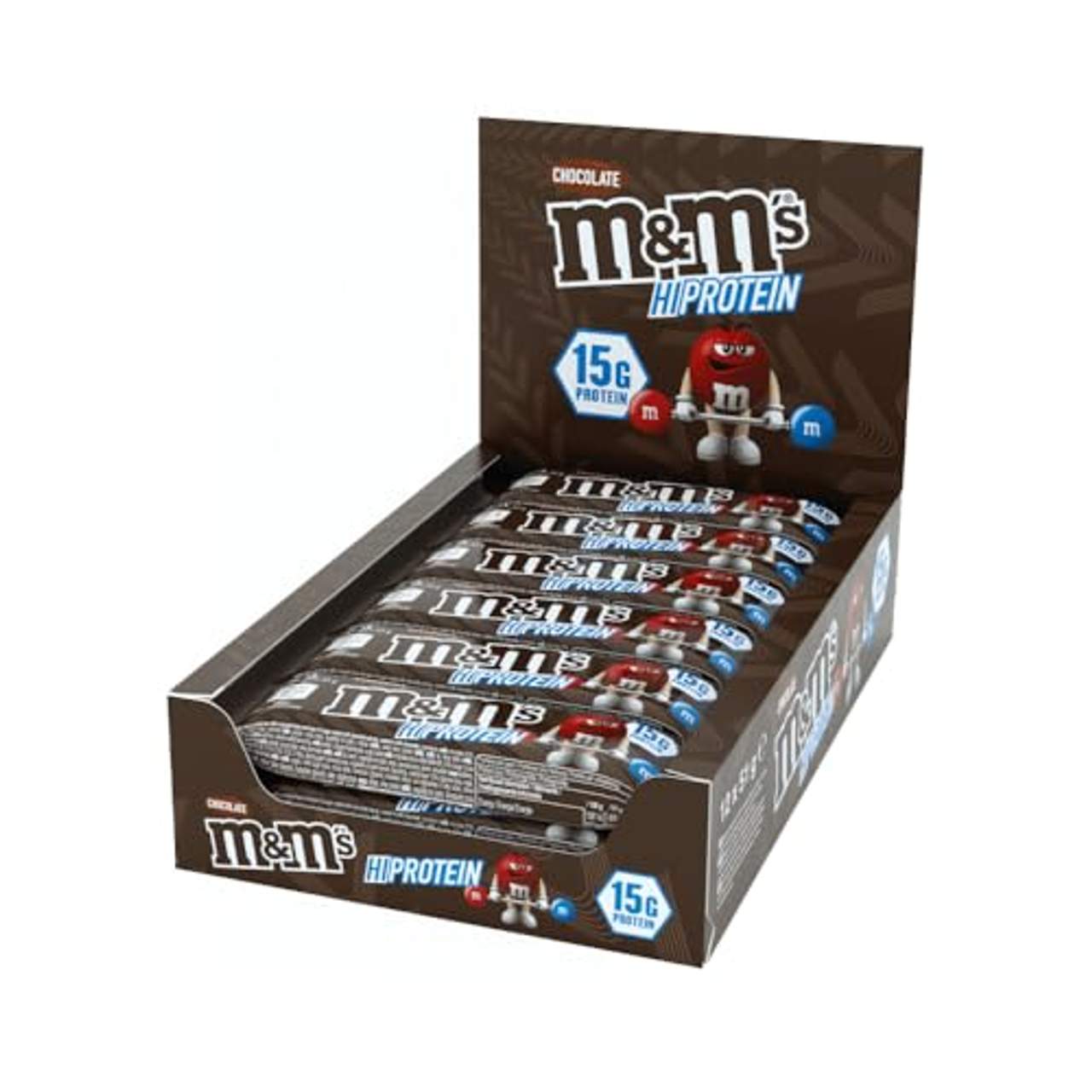 M&M’s Hi-Protein Bar Chocolate ist ein Proteinriegel mit 15 g Protein pro Riegel. Er enthält M&M’s-Stücke und eine Schicht Milchschokolade, die mit Zucker und Süßungsmitteln überzogen ist. Eine Packung mit 12 x 51 g hat einen durchschnittlichen Nährwert von 801 kJ (192 kcal) pro Portion, 11 g Fett, 23 g Kohlenhydrate, 15 g Protein, 0,33 g Salz, 46 g Kohlenhydrate und 29 g Protein. Außerdem enthält es Milcheiweiß, Molkeneiweißkonzentrat, Magermilchpulver, Kakaobutter, Laktose, E322 Sojaemulgator und andere Zutaten. Für Vegetarier ist es nicht geeignet.