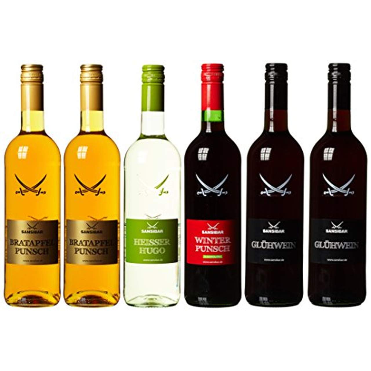 - Vielfalt der Geschmacksrichtungen: Dieses Produkt wird mit je zwei Flaschen "Sansibar"-Glühwein und Bratapfelpunsch sowie je einer Flasche "Heißer Hugo" und alkoholfreiem Winterpunsch geliefert, so dass die Kunden eine große Auswahl haben.