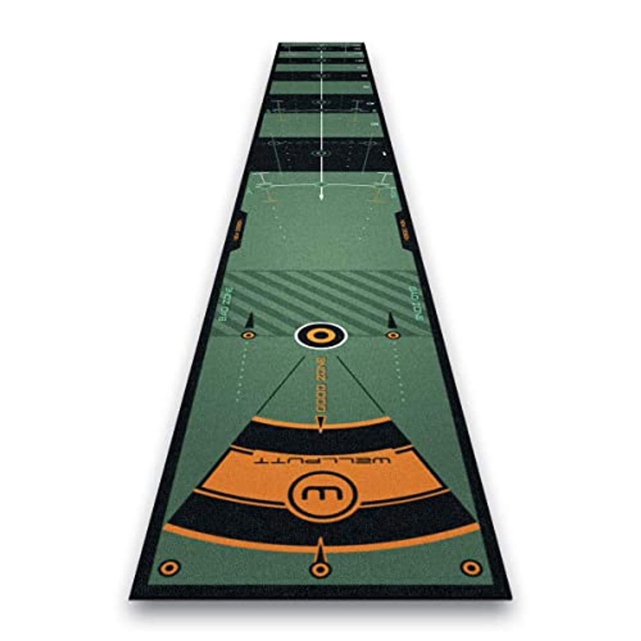 Dieses Produkt ist die Wellputt Golf Putting Mat 4 Meter, mit Trainings-App für iOS & Android. Es wurde von Cameron McCormick genehmigt und entworfen, um Golfern zu helfen, das Zielen und die Geschwindigkeitskontrolle auf beiden Seiten der Matte zu üben. Sie hat sieben verschiedene „Feel“-Zonen und misst im ausgerollten Zustand 4m x 50cm. Die Rollgeschwindigkeit reicht von 3m/3,5m (10ft/11,5ft) und liegt je nach Richtung zwischen 9,6-10,6 Stimpmetern. Darüber hinaus können die Nutzer über die von Coach Cameron McCormick mitentwickelte kostenlose Trainings-App auf 50 Übungen auf 3 anspruchsvollen Strecken zugreifen.