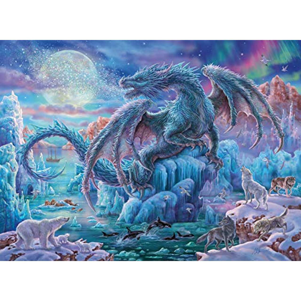 Das Ravensburger Puzzle 14839 Eisdrache besteht aus 500 aufwändig gestalteten Teilen, die eine große Herausforderung darstellen. Es richtet sich an eine breite Zielgruppe: Anfänger, die sich erst einarbeiten müssen, können sich an den einfachen Mustern erfreuen, während erfahrene Rätsellöser genug Komplexität haben, um sich zu beschäftigen. Nach dem Zusammenbau misst das Puzzle ca. 49x36cm /36x49cm und zeigt sich in beeindruckender Größe mit komplizierten Details und leuchtenden Farben.
