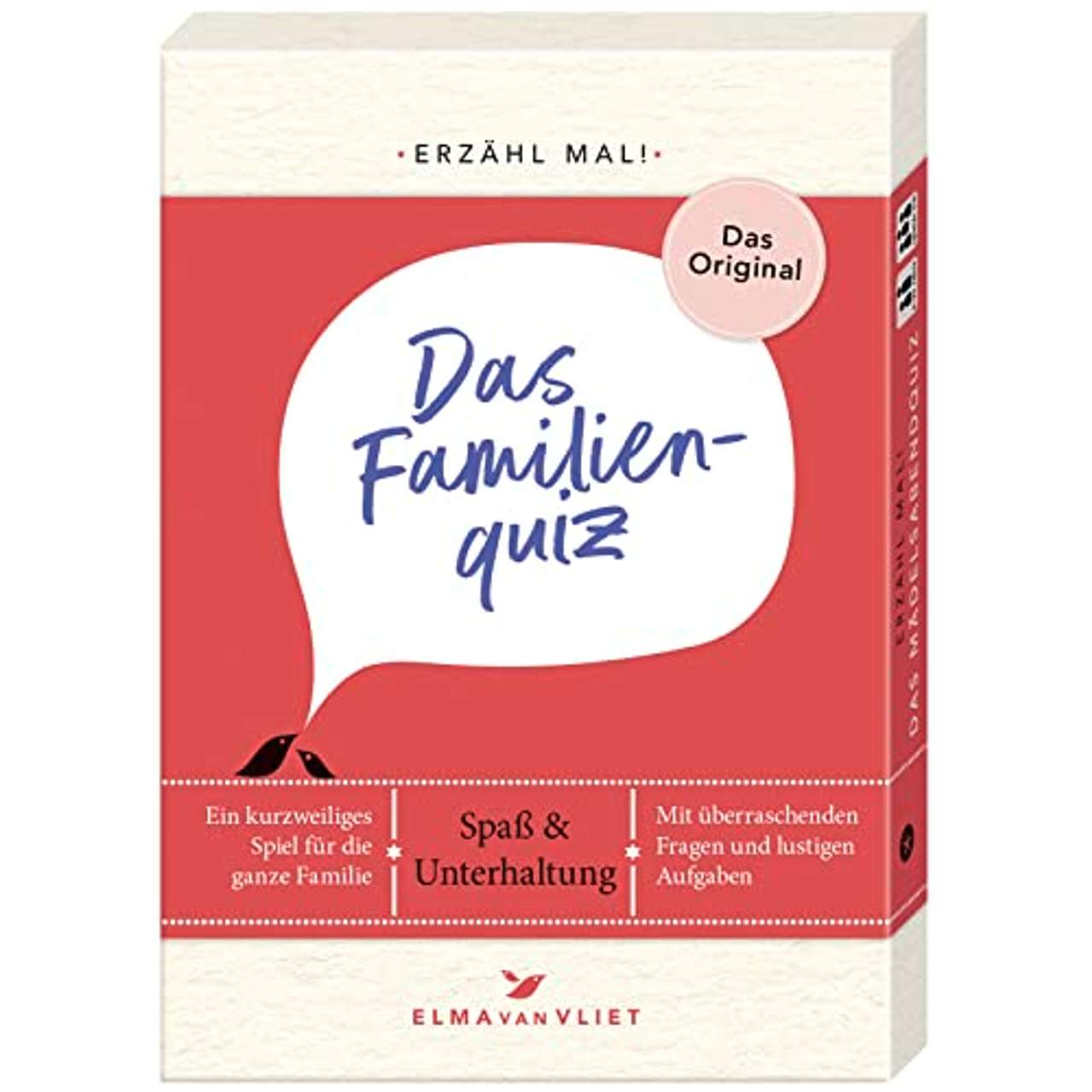 Knaur HC Erzähl mal„Erzähl mal! Das Familienquiz“ ist ein unterhaltsames Erzählspiel für die ganze Familie.Wie und wo haben deine Eltern sich kennengelernt? Gibt es in eurer Familie eine berühmte Persönlichkeit? Was hast du von Oma und Opa gelernt? Womit spielte deine Mutter in ihrer Kindheit am liebsten?Wie gut kennen Sie eigentlich Ihre Familie? Wie viel weiß sie von Ihnen? Das kurzweilige „Erzähl mal!-Familienquiz“ enthält 110 ebenso unterhaltsame wie persönliche Fragen, die man einander reihum stellt. Auf diese Weise entspinnen sich spannende Gespräche und kommen verblüffende Anekdoten und Erinnerungen zutage. Das perfekte Spiel für einen ausgelassenen und schönen Abend im Familienkreis.- Bestehend aus 110 liebevoll gestalteten Spielkarten (63 x 88 mm) und einer Spielanleitung.- Für 3-8 Spieler, Alter: 8-99- Für schöne Gespräche in der FamilieSchenken Sie dieses Spiel einem lieben Menschen zum Geburtstag, zu Weihnachten oder einfach zwischendurch - oder kaufen Sie es für schöne überraschende und Gespräche in der eigenen Familie.Von Elma van Vliet, Autorin von Bestsellern wie „Mama, erzähl mal!“, „Papa, erzähl mal!“ und „Erzähl mal! Das Freundquiz“.ERLEBEN - ERZÄHLEN - ERINNERNVliet, Elma vanElma van Vliet wurde 1974 im niederländischen Pijnacker geboren und lebt heute in Den Hoorn. Sie ist Autorin der erfolgreichen Geschenkbuch-Reihe „Erzähl mal!“, deren Bücher sich in Deutschland bislang über 2 Millionen Mal verkauften.