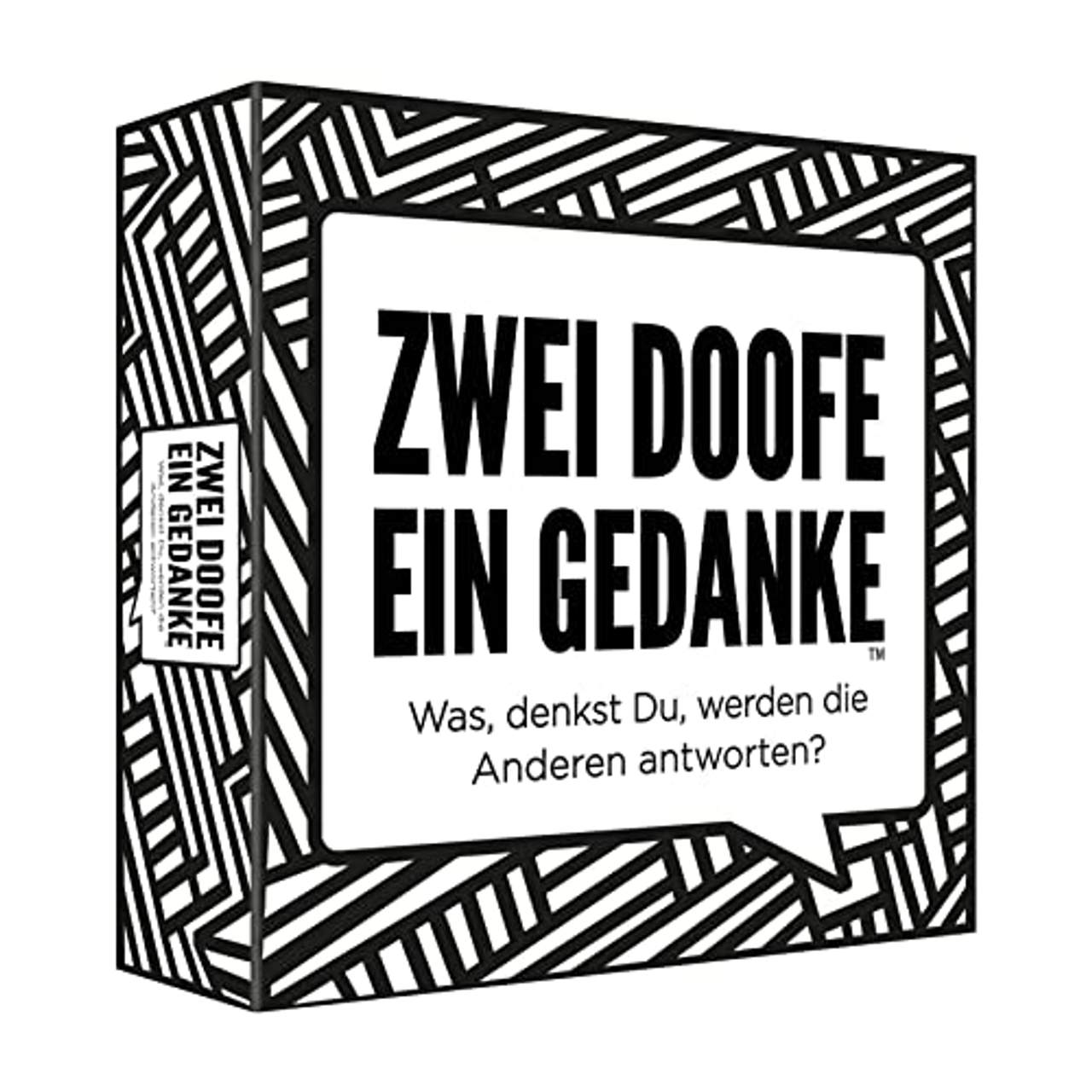 Kylskapspoesi 43020 Zwei Doofe ein GedankeZwei Doofe, ein Gedanke. Ein TV-Moderator? Ein Körperteil? Eine Biermarke? Ein Tier im Zoo? Ein Song von ABBA? Ein Sexsymbol? Wie, denkst Du, wird die Antwort der Anderen ausfallen? Zwei Doofe, ein Gedanke ist ein mitreißendes und unterhaltsames Spiel mit hohem Funfaktor.Dabei muss jeder Spieler versuchen dieselbe Antwort abzugeben wie die anderen Spieler. Je mehr Spieler so wie Du geantwortet haben, desto mehr Punkte erhältst Du. Wie gut kannst Du Deine Mitspieler einschätzen? Der Spieler, der am Zug ist, liest die Frage laut vor und lässt jeden ein wenig darüber nachdenken und zählt dann runter 3, 2, 1…dann antworten alle gleichzeitig im Chor. Was haben die Anderen gesagt? Hat jemand genauso geantwortet wie Du? Mach Dich gefasst auf jede Menge Spaß, komplett falsche Einschätzungen und lustige Antworten! Zwei Doofe, ein Gedanke ist ein verrücktes, temporeiches und super lustiges Spiel mit mehr als 500 Themen.Ein ideales Geschenk und Mitbringsel für jede Gelegenheit, lustigePartys und gesellige Abende!