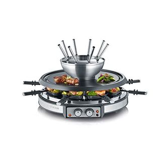 Die Tischgrills mit Fondue und Raclette 3-in-1 SEVERIN Raclette-Fondue-Kombination 1900 W Raclette und KESSER 3in1 Raclette-Grill mit Naturgrillstein sind auch einen Blick wert.