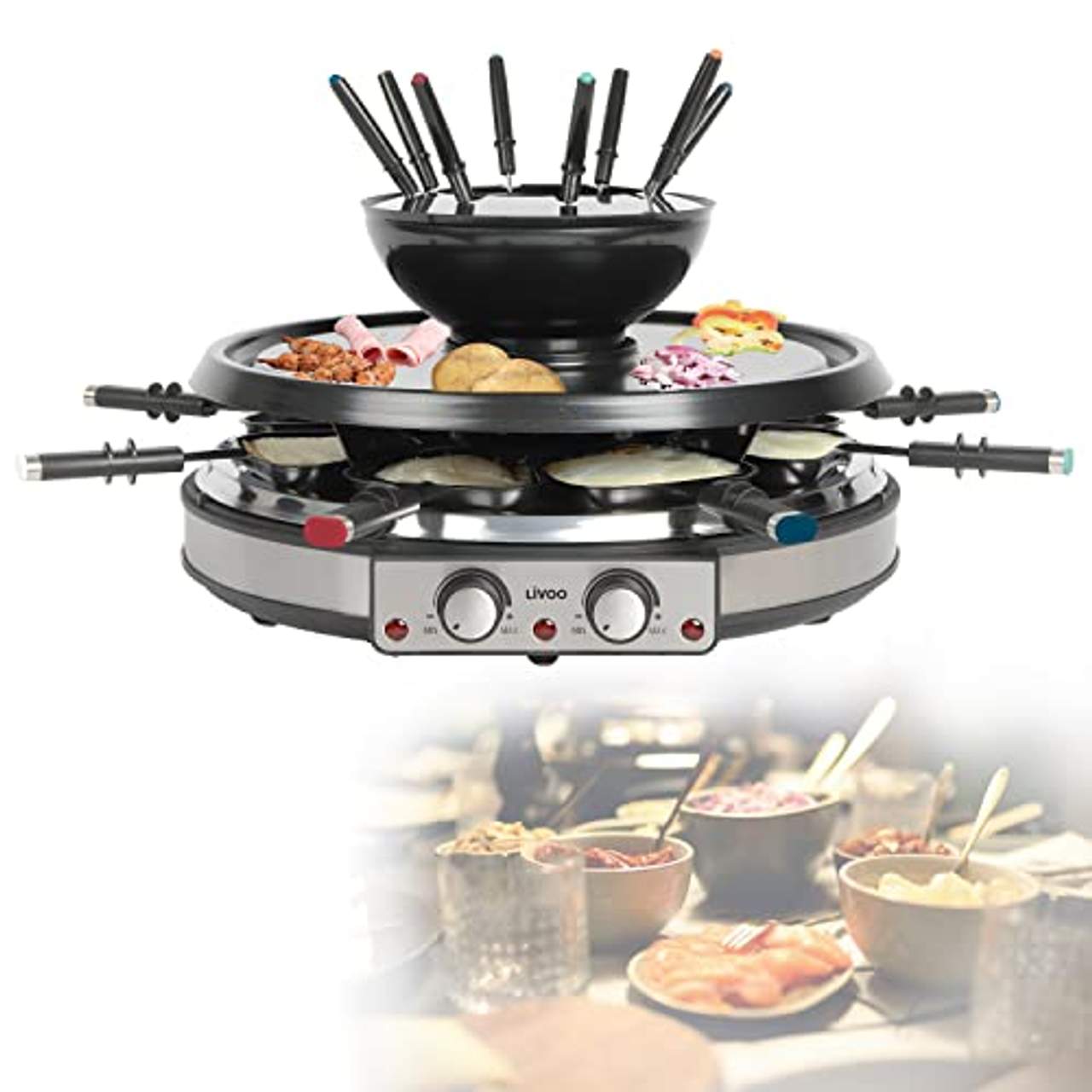 Das Raclette Fondue Kombi 8 Personen von Livoo ist nicht nur ein Gerät, sondern ein Weg zu unvergesslichen Essenserlebnissen. Dieses 3-in-1-Gerät ist groß genug für acht Personen und bietet eine einzigartige Mischung aus Raclette-, Fondue- und Elektrogrillfunktionen, die jede Zusammenkunft in ein außergewöhnliches kulinarisches Ereignis verwandeln können.