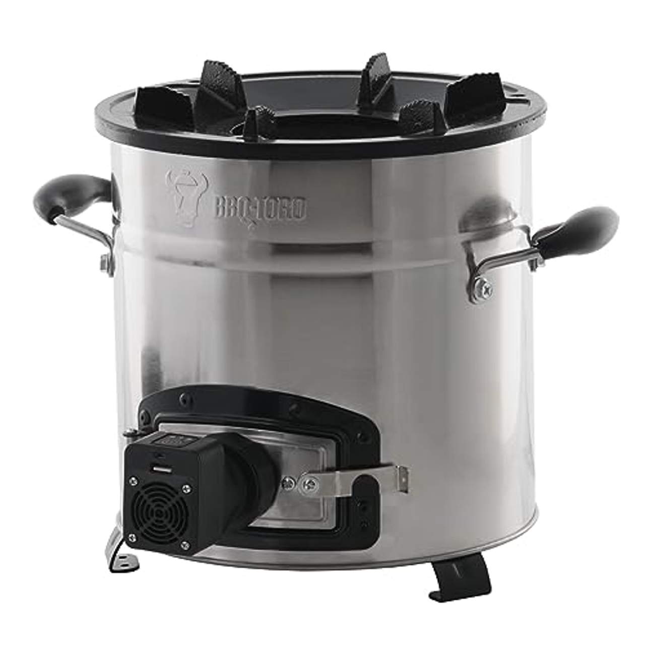 Der BBQ-Toro Raketenofen Rocket #3 ist ein Raketenofen, der zum Kochen im Freien bei allen Wetterbedingungen verwendet werden kann. Er erzeugt rauch- und funkenfreie Flammen, was ihn umweltfreundlich und energieeffizient macht. Dank seiner Vielseitigkeit kann er mit Dutch Ovens, gusseisernen Pfannen und Töpfen verwendet werden. Die Luftzufuhr lässt sich mit dem mitgelieferten USB-Gebläse in 3 Stufen regulieren. Ein hervorragendes Geschenk für alle, die gerne im Freien kochen.