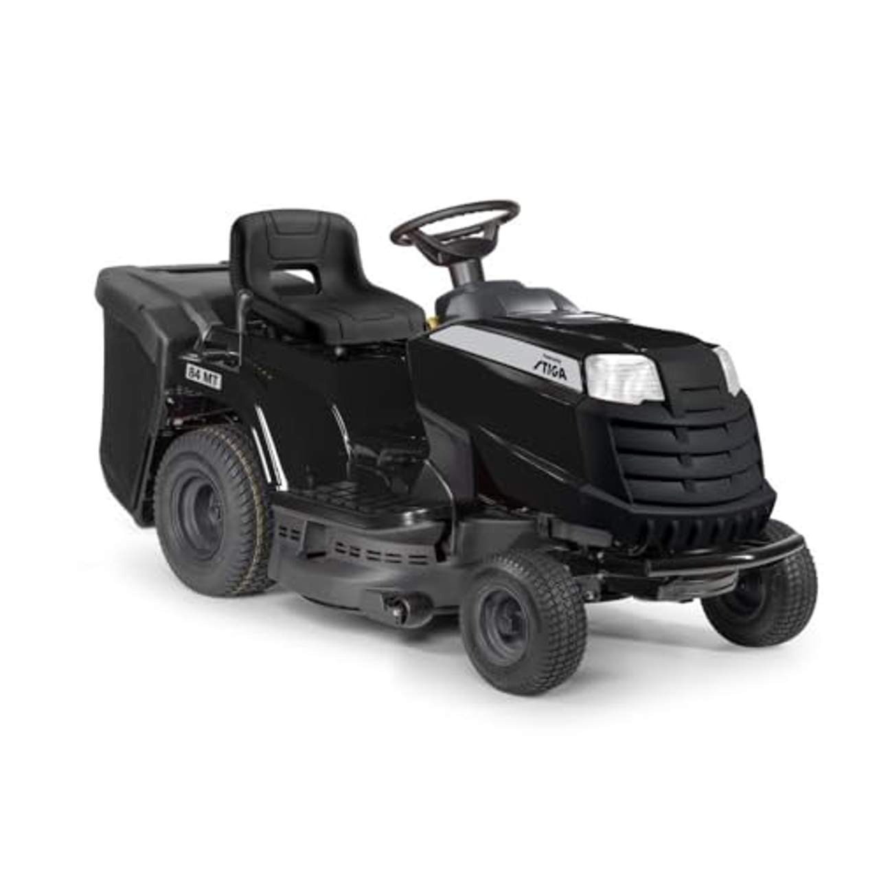 Der „Powered by Stiga 84 MT“ ist ein vielseitiger Rasentraktor, der drei Arten des Schneidens in einem Produkt bietet: Aufsammeln, Mulchen und Heckauswurf. Er verfügt über sieben voreingestellte Schnitthöhen und ein mehrstufiges Getriebe zur optimalen Anpassung an unterschiedliche Rasenbedingungen. Der Traktor ist mit einem 352 cm³ großen Einzylindermotor „Stiga“ St 350 ausgestattet, der 5,8 kW Leistung auf die Hinterräder und Messer bringt. Mit einer durchschnittlichen Schnittbreite von 84 cm ist er sowohl für große Flächen als auch für enge Räume geeignet. Außerdem hat er rutschfeste Räder, um Schäden an empfindlichen Oberflächen zu vermeiden, wenn er an Hängen manövriert wird.