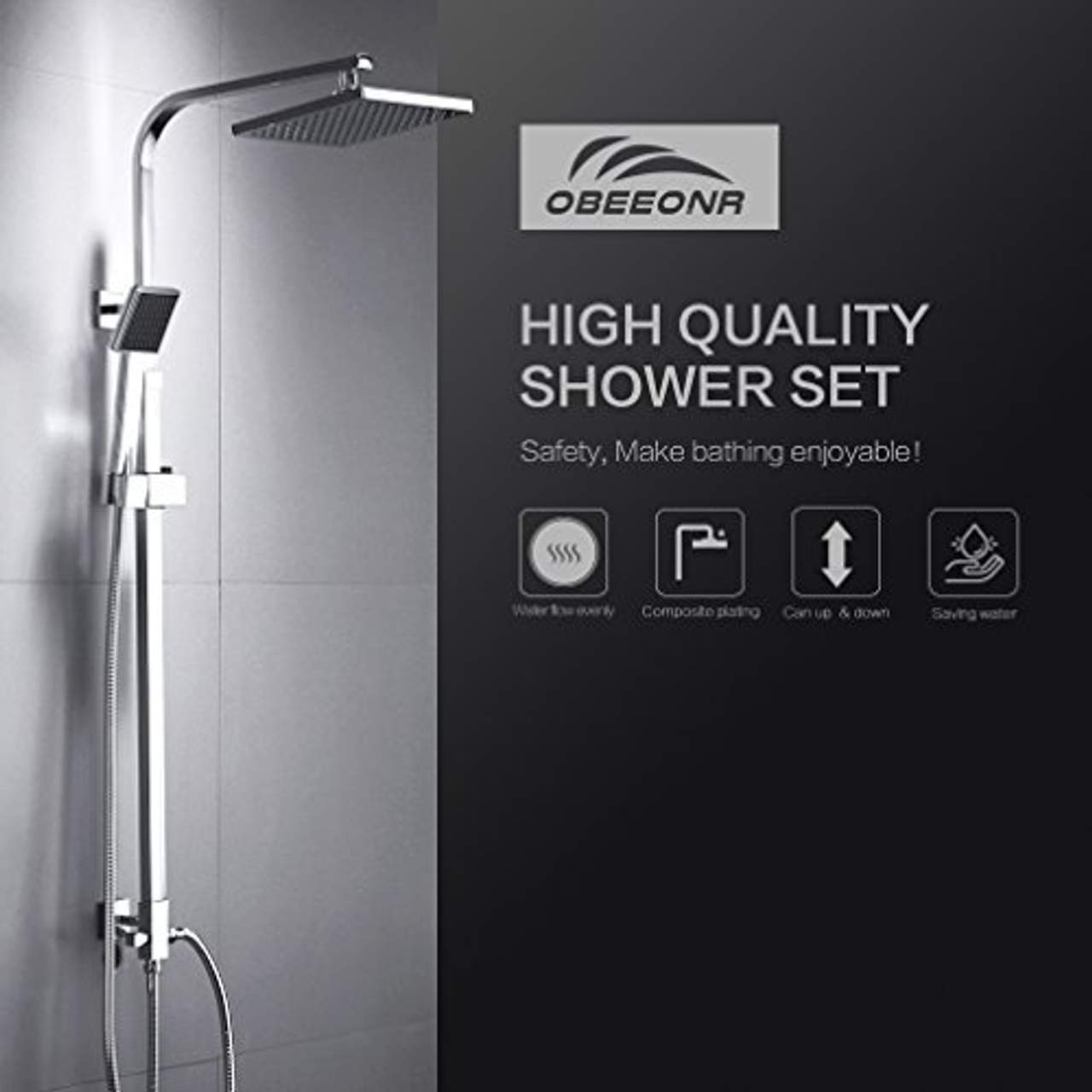 Der Regenbrausekopf dieses Duschsets misst 8 Zoll (200*200mm) und bietet damit einen ausreichenden Abdeckungsbereich und einen entspannenden Regenstrahl.