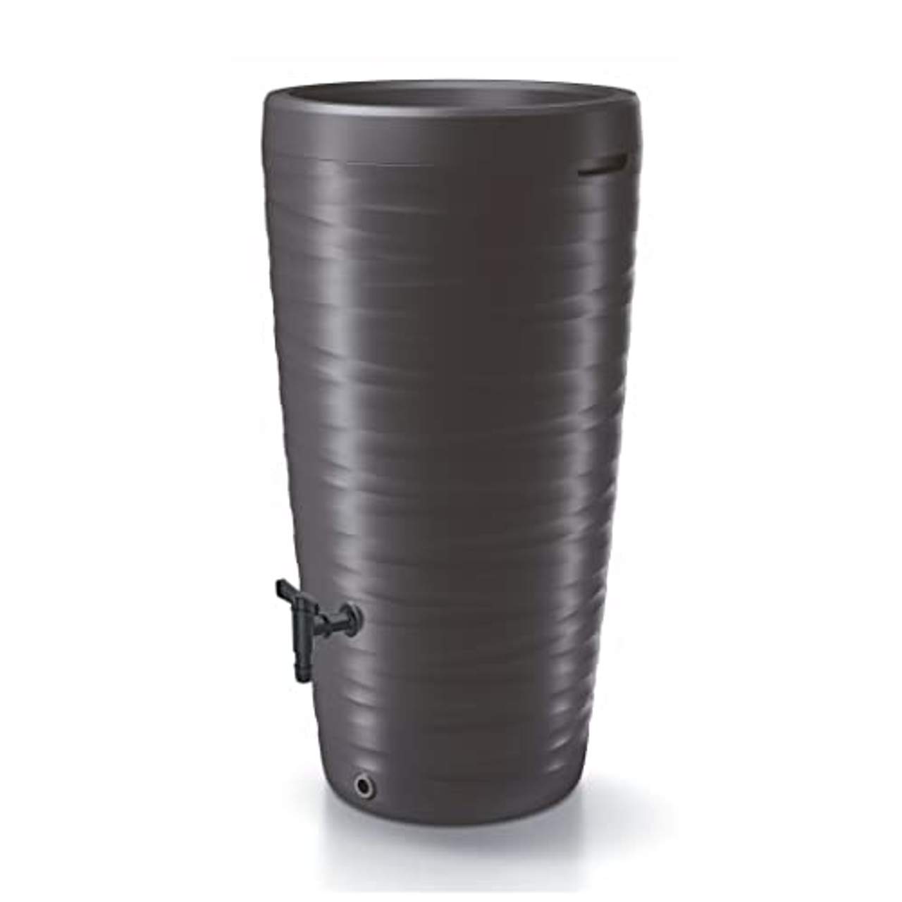 Spetebo Design Regentonne 240 LDesign Regentonne 240 L mit Wasserhahn - anthrazit - Regenwasser Tank mit Pflanzschale als Deckel Formschöne Regenwasser Tonne aus Kunststoff in anthrazit 240 L Volumen mit Wasserhahn und Pflanzschale als Deckel Artikeldaten: Die Größe beträgt ca. 115 cm x 57 cm (Höhe x Durchmesser) Material: Kunststoff Farbe: anthrazit Design Regentonne im modernen Wave Design Fassungsvermögen ca. 240 L mit Fallrohr-Anschlussstelle 2 verschiedene Ablauf-Anschlüssen: Wasserhahn / 3/4 Zoll Wasserschlauch der Wasserhahn und eine Anschluss-Abdeckung für den Winter sind im Lieferumgang enthalten inklusive formschöne Pflanzschale als Deckel wetterfestes und UV beständiges Material Regentonne und Garten-Dekoration in Einem Lieferumfang: 1x Design Regentonne 240 L mit Wasserhahn - anthrazit