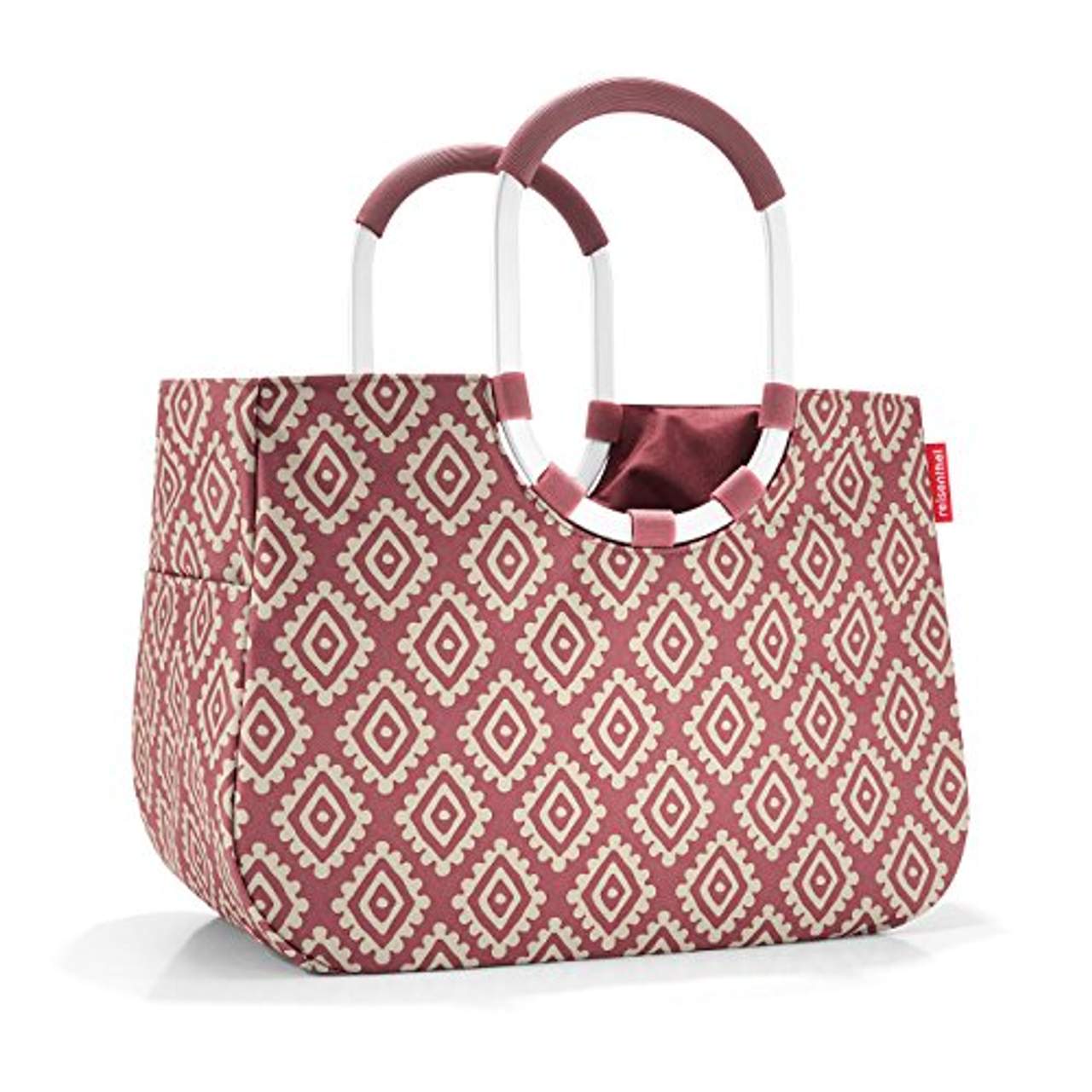 reisenthel loopshopper L Diamonds Rouge Maße: 46 x 34,5 x 25 cmDer loopshopper ist ein vielseitiger Blickfang für jeden TagLassen Sie diese Tragetasche zu Ihrem täglichen Begleiter werden. Aufgrund seiner Vielseitigkeit eignet sie sich nicht nur zum Einkaufen. Die formschönen Henkel in Ringform geben dem Shopper nicht nur seinen Namen, sondern sorgen auch für Tragekomfort. Sie sind gepolstert und aus stabilem Aluminium gefertigt. Auf kleinen Standfüßen steht ihr Einkaufskorb sicher und der Boden wird nicht verschmutzt. Nutzen Sie diese formschöne Mischung aus Korb und Handtasche in Büro und Freizeit und lassen Sie sich von den Vorzügen des Shoppers überzeugen.BESONDERHEITEN