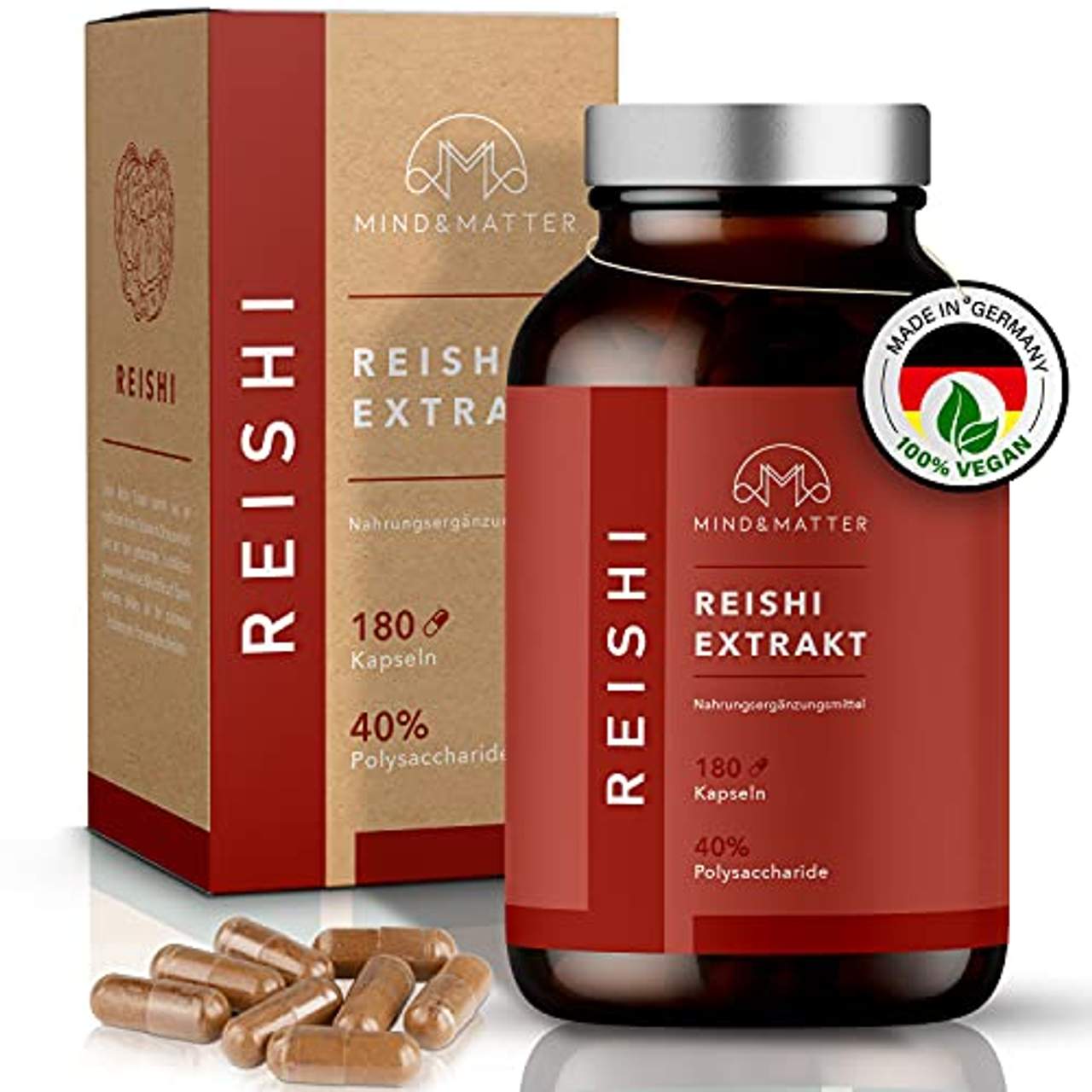 Bei diesem Produkt handelt es sich um eine Reishi-Kapsel namens „Original Reishi Extrakt Kapseln Vegan“ der Marke „mind&matter“. Sie enthält 1200mg Reishi-Fruchtkörper-Extrakt mit über 40% bioaktiven Polysacchariden pro Tagesdosis (480mg). Die Kapseln werden in Deutschland nach deutschen Qualitätsstandards hergestellt, auf Schadstoffe geprüft und sind 100% vegan, laktose- und glutenfrei. Sie werden in hochwertigem Apothekerglas geliefert, das optimalen Schutz vor Licht und Feuchtigkeit bietet und eine lange Haltbarkeit gewährleistet. Eine Zufriedenheitsgarantie von 365 Tagen ist ebenfalls enthalten.