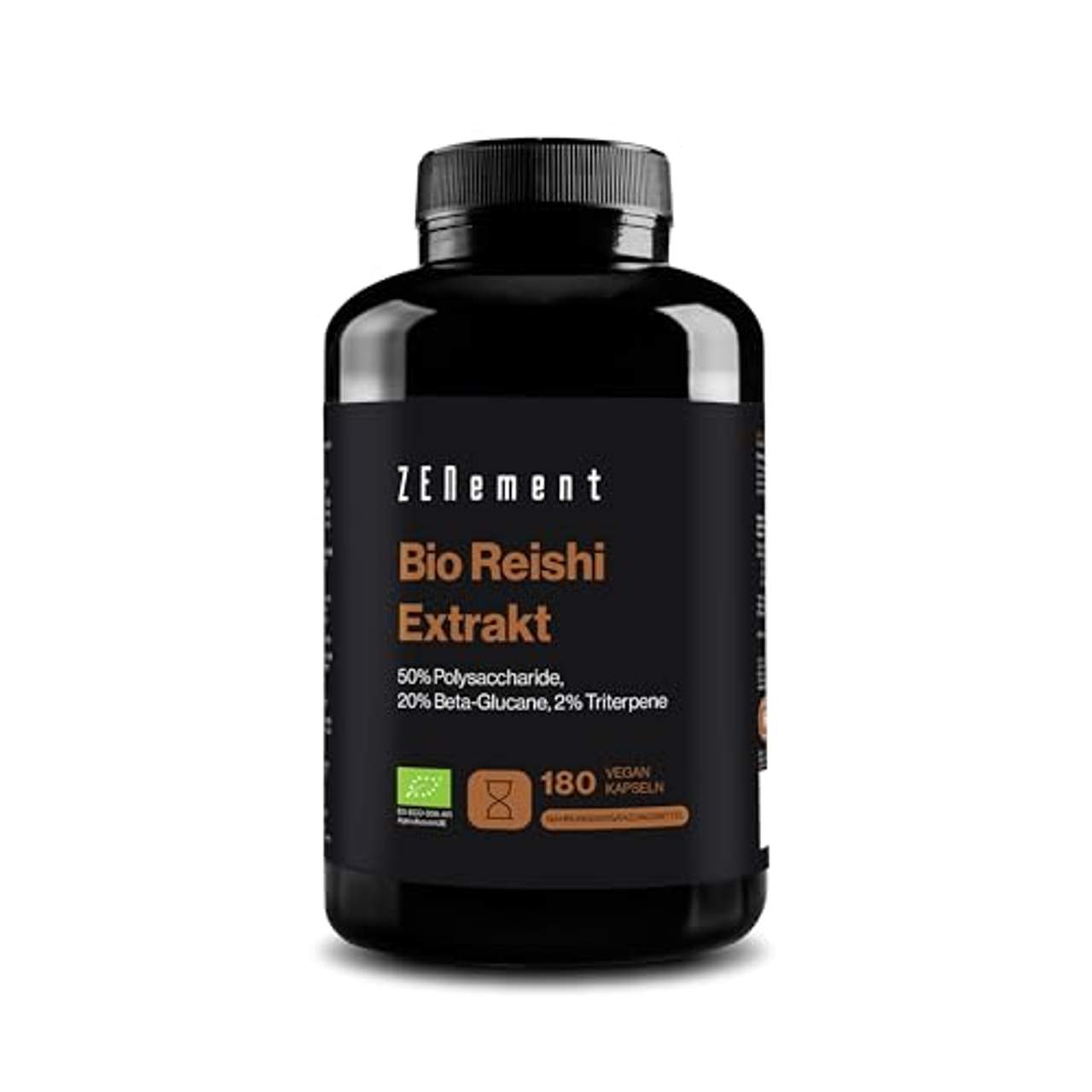 Zenement Reishi Extract 12000mgHERVORRAGENDES PREIS-LEISTUNGSVERHÄLTNIS: 180 hochdosierte Bio Reishi Kapsel mit 1200 mg Extrakt pro Tagesportion. Für unsere Reishikapseln wird echtes Reishi Fruchtkörperextrakt verwendet. Praktischer 6 Monatsvorrat ausreichend für ganze 180 Tage. BIO NATÜRLICHER PREMIUM ROHSTOFF: Hergestellt aus 600 mg konzentriertem natürlichem 20:1 Bio Reishi-Extrakt, was 12.000 mg Reishi-Pilz entspricht. Jede Kapsel enthält 300 mg Polysaccharide, 120 mg Betaglucane und 12 mg Triterpene, die Wirkstoffe, die diesem Heilpilz all seine therapeutischen Eigenschaften verleihen.GEPRÜFT IN EINEM EXTERNEN LABOR: Die Reishi-Kapseln wurden von einem akkreditierten Labor getestet. Wir führen regelmäßig Analysen in akkreditierten unabhängigen Labors durch, um die höchste Qualität des Produkts zu garantieren.
