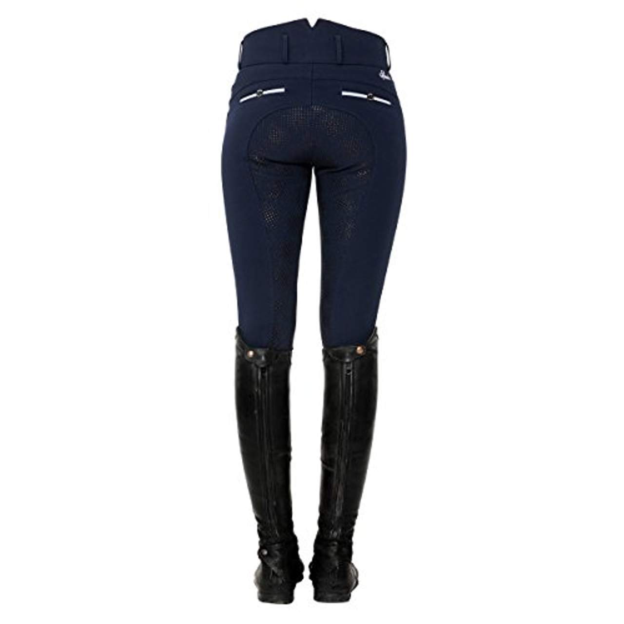 SPOOKS Reithose für Damen Mädchen KinderBesondere Eigenschaften: * Sehr bequeme und stylische Grip-Reithose mit hohem Bund, klassischem Voll-Grip-Besatz und praktischem Fußbündchen Zusätzlich ist die Hose mit blau-weiß gestreiften, abgesetzten Seitentaschen versehen