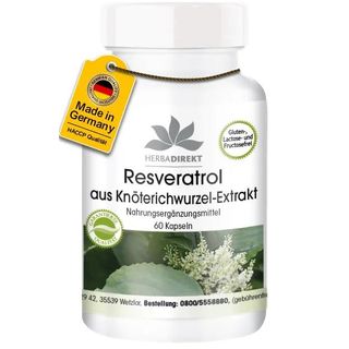 - herba direct Resveratrol 500mgca. 28 €0,47 €/StückGratis Premiumversand mit Amazon Prime