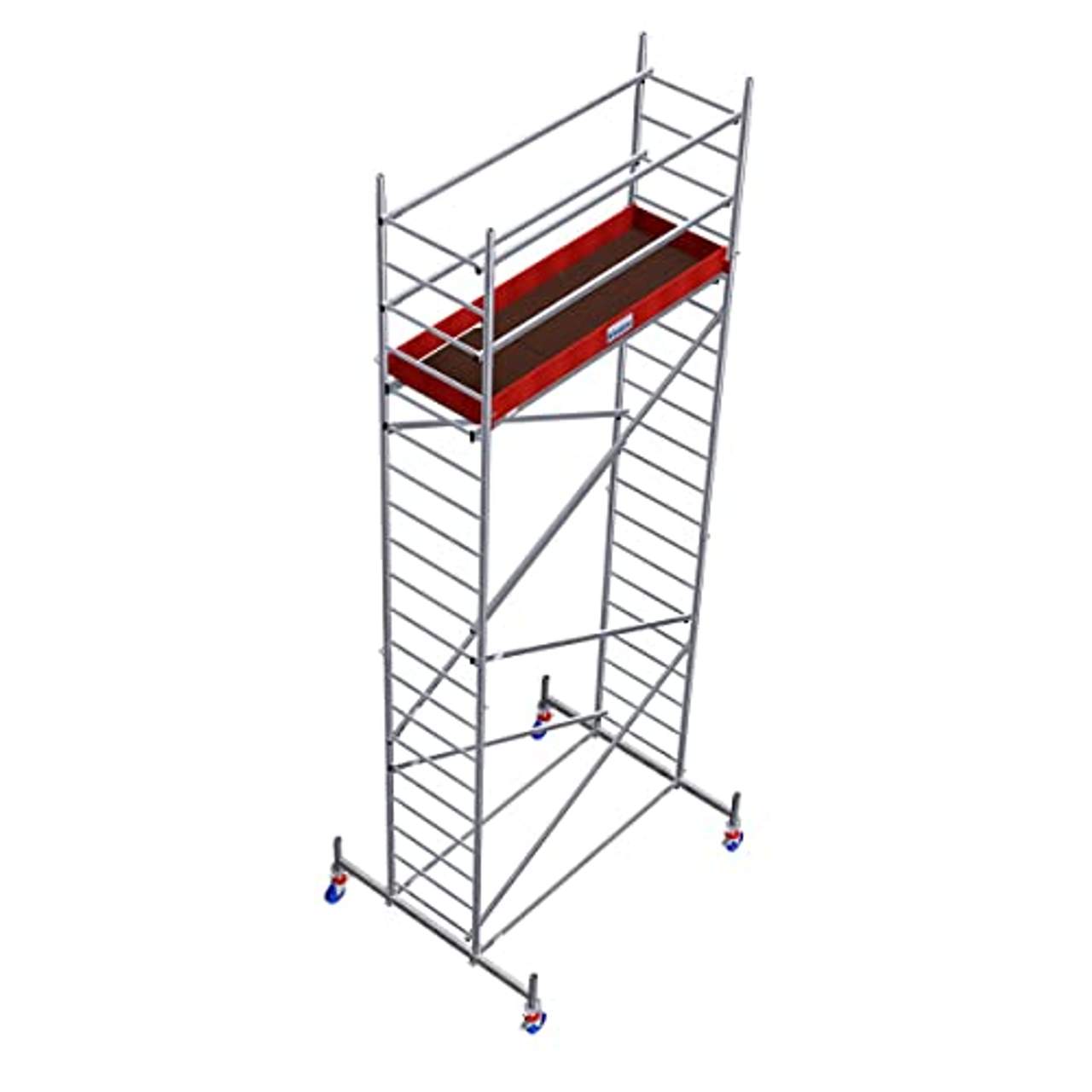 Das Funktionsprinzip dieses Fahrgerüsts sorgt dafür, dass die Nutzerinnen und Nutzer in aller Ruhe arbeiten können, ohne sich um die Stabilität ihrer Ausrüstung sorgen zu müssen. Der Querträger aus hochfestem Stahl stützt nicht nur die Struktur, sondern erhöht auch die Gesamtsteifigkeit, wodurch ein mögliches Wackeln oder Schwanken in der Höhe reduziert wird.