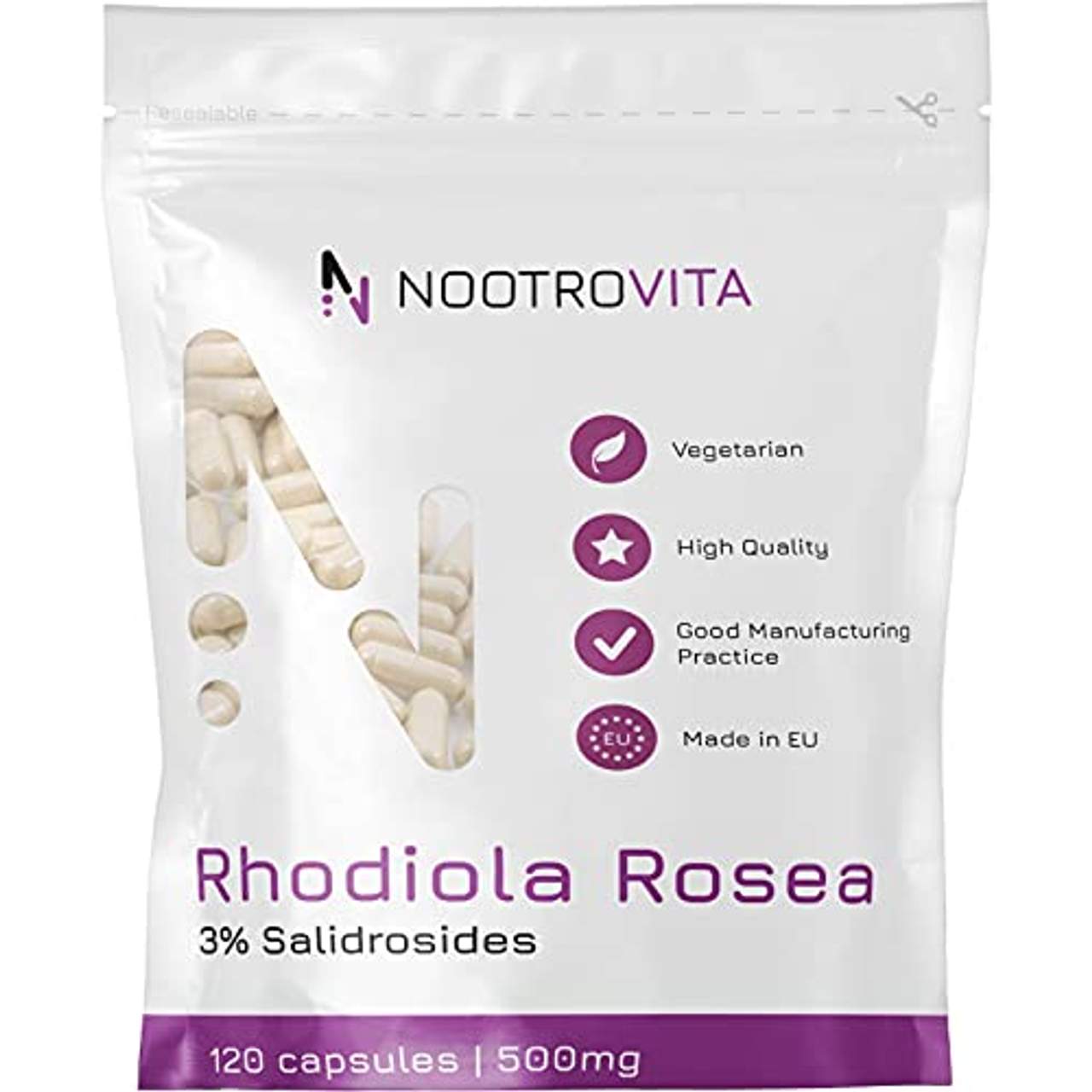 NV Rhodiola Rosea 500mg von Nootrovita ist ein Rosenwurzel-Extrakt mit 3% Salidrosiden, der doppelt so stark ist wie der anderer Marken. Jede Kapsel enthält 500mg des Extrakts und bietet 120 Kapseln pro Behälter für einen 120-Tage-Vorrat. Es unterstützt die Gehirnfunktionen, hat keine unerwünschten Nebenwirkungen und ist 100% vegan, glutenfrei, laktosefrei und frei von tierischen Bestandteilen. Es wird in Europa nach hohen Qualitätsstandards hergestellt.