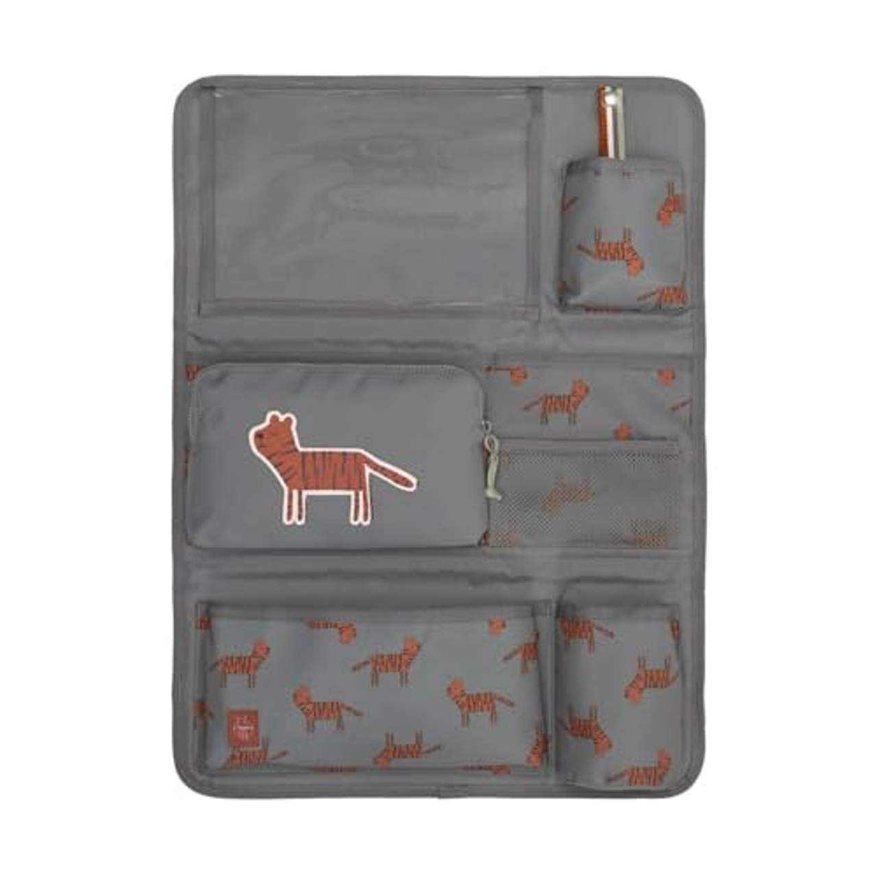 LÄSSIG Autoorganizer Autorücksitzorganizer RücksitztascheAuf großer Safari rund um die Welt! Der Auto-Organizer mit den frechen Tieren aus der LÄSSIG Safari Kollektion sorgt auch bei längeren Entdeckungstouren für stressfreie Autofahrten. Mit seinem verspielten Print und einem Stauraum mit vielen praktischen Details ist er der ideale Begleiter für Kurz- und Langstrecken.Durch die einfache Befestigung an der Rückenlehne ist der Organizer in wenigen Handgriffen in jedem Auto befestigt. Mit seinen zahlreichen funktionalen Staufächern mit Klett- und Reißverschlüssen sind Kuscheltiere, Spielzeug, Snacks und Co. organisiert verstaut. So haben die Kids auf der Rückbank alles Wichtige selbstständig in greifbarer Nähe.Für die Lieblingsserie oder den neusten Kinderfilm findet das Tablet dank des praktischen Sichtfensters in dem extragroßen Fach (26 x 18,5 cm) entspannt seinen Platz. An der Befestigungsschlaufe daneben lassen sich die Kopfhörer griffbereit befestigen. Sollte bei Getränken oder Proviant unterwegs mal etwas daneben gehen, ist das kein Problem. Das Außenmaterial des Organizers ist wasserabweisend und lässt sich kinderleicht abwischen.Die Lieferung erfolgt ohne Inhalt.