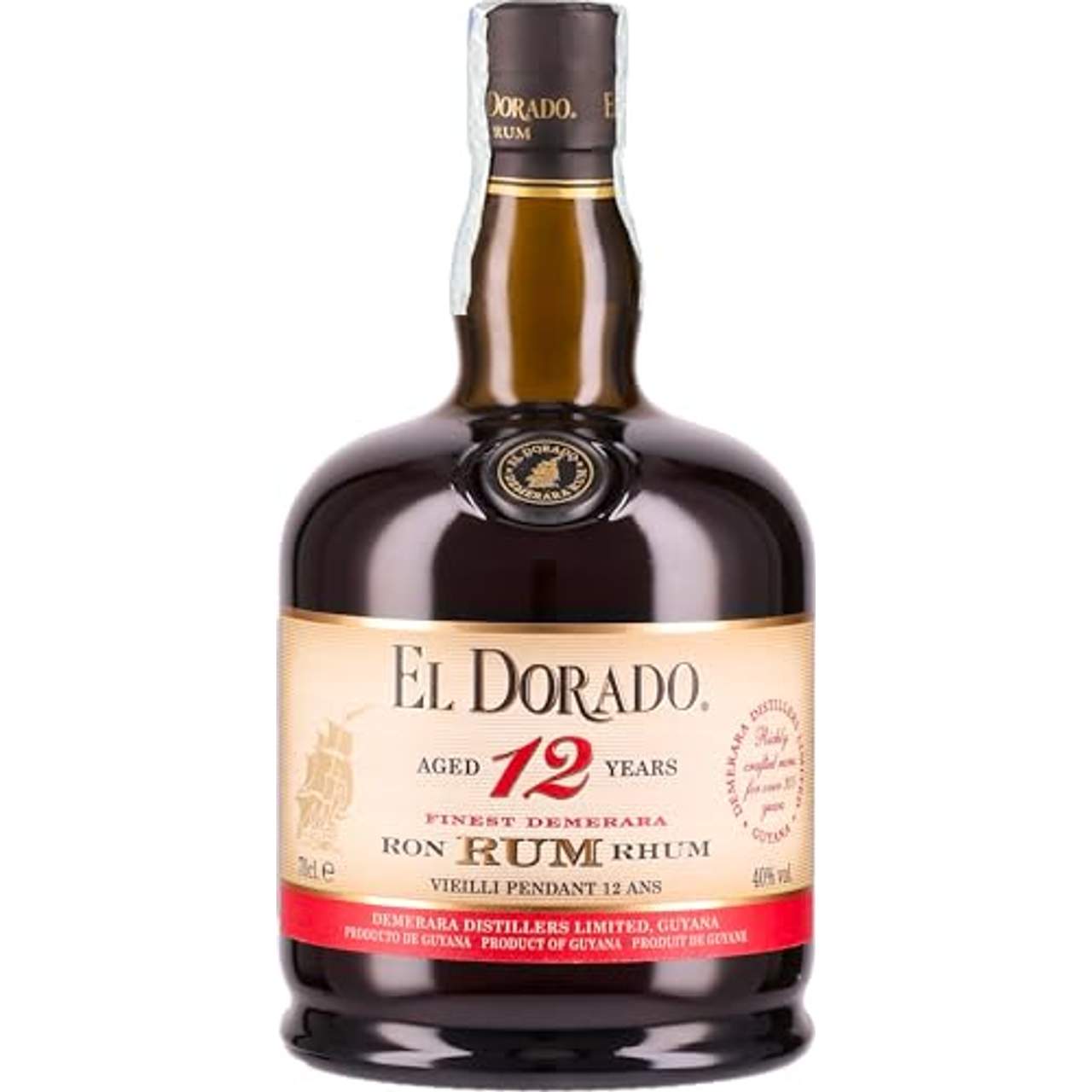 El Dorado 12 Jahre hat eine Nettofüllmenge von 0,7 Litern und einen Alkoholgehalt von 40 % vol. und ist damit die perfekte Wahl für alle, die einen ausgewogenen Rum suchen. Es ist erwähnenswert, dass dieser Rum Farbstoffzusätze enthält und zur Rückverfolgbarkeit eine eindeutige Loskennzeichnung hat.