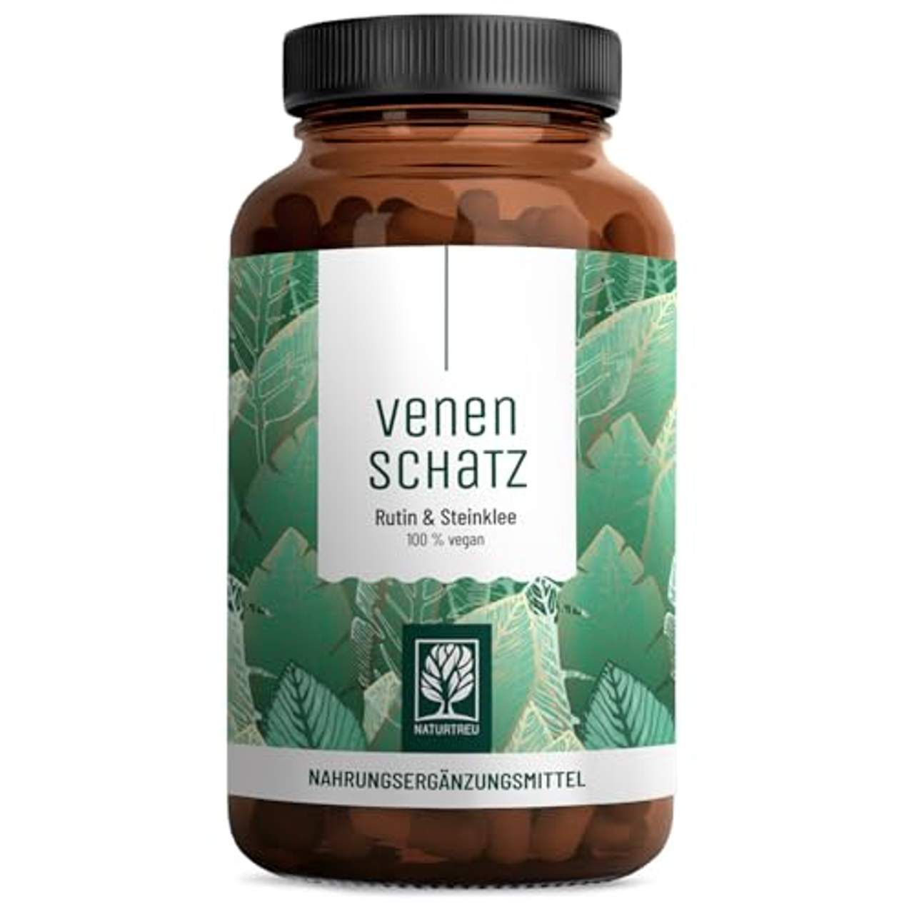NATURTREU Rutin Steinklee KomplexVenenschatz - Informationen AUF Einen Blick: Pro Tagesdosis (2 Kapseln) Venenschatz : Rutin 500 mg - pflanzlich aus japanischem Schnurrbaum (Styphnolobium japanicum) Steinklee 394 mg - aus Steinkleekrautpulver (Melilotus officinalis) 0,5 mg Mangan und 0,25 mg Kupfer Reinheit: ohne Gentechnik, ohne Magnesiumstearat und ohne Zusatz-, Füllstoffe oder sonstige Aromen Ein sicheres Gefühl: Unabhängige Laborprüfungen auf Belastung und Wirkstoffgehalt werden regelmäßig durchgeführt Leider sind wir als Hersteller von Nahrungsergänzungsmitteln rechtlich nicht dazu berechtigt, gesundheitsbezogene Aussagen zu treffen.Wir bitten deshalb um eigene Recherche aus relevanten Quellen. Die Zusammensetzung basiert auf neuesten wissenschaftlichen Erkenntnissen, ist rein natürlich und ohne Zusatzstoffe.