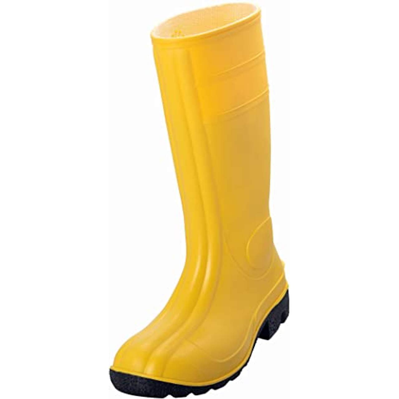 Uvex Nora Gummistiefel Sicherheitsstiefel S5 SRCBesonders chemikalienresistente SicherheitsstiefelDer uvex Sicherheits-Gummistiefeln „NORA“ S5 zeichnet sich durch eine sehr hohe Resistenz gegen Öle, Fette, Kraftstoffe, Laugen, Säuren und Desinfektionsmittel aus und ist damit der perfekte Sicherheitsstiefel, wenn man mit Chemikalien arbeitet.Sicherheitsklasse S5 auf einen BlickÄußerst belastbare Stahlkappe und StahlzwischensohleVerstärkung im Fersenbereich durch anti-twist-HinterkappeExtrem rutschhemmende (SRC) ergonomisch gestaltete LaufsohleWasserdichtChemiekalienresistentWeitere Highlights der ArbeitsgummistiefelAlle Sohlenmaterialien sind frei von Silikonen, Weichmachern und anderen lackbenetzungsstörenden SubstanzenAntistatischAnatomisch geformte Leisten beugen der Ermüdung des Fußes vorAusziehhilfeIndividuell kürzbarer LangschaftZusätzlicher Knöchelschutz Obermaterial:PVCInnenmaterial: ungefüttertSohle: PVCMaterial Zehenkappe: StahlAbsatzhöhe: 2 cmSchafthöhe: 33 cmAbsatzform: profilierte, rutschfeste SohleFarbe: gelbSchutzklasse: S5 SRCDIN-Norm: EN ISO 20345:2011Größen: 42-47Gewicht: 2,2-3,0 kg Biozid: 0