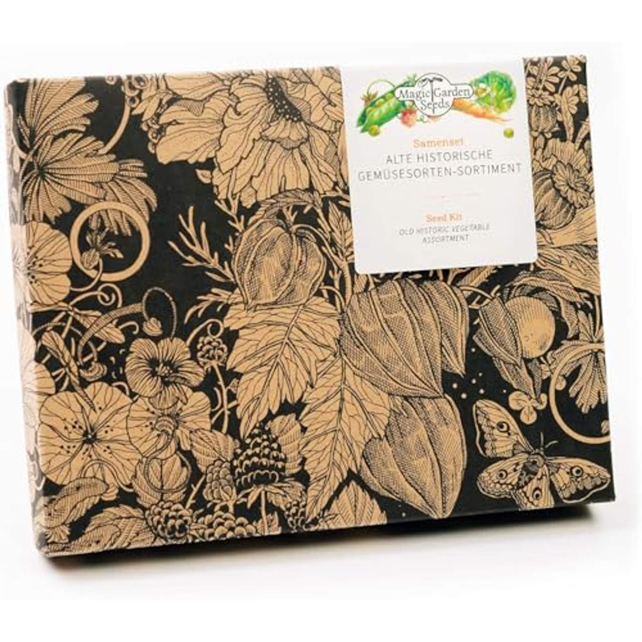 Diese Saatgut-Rarität „Altes historisches Gemüsesorten-Sortiment“ der Marke „Magic Garden Seeds“ enthält 8 Samentütchen mit jeweils einer anderen Gemüsesorte. Dazu gehören Kerbelrübe, Pferdebohne, Zuckererbse, Purpurmöhre, Meerkohl, Guter Heinrich, Rote Bete und Gartenmandel. Alle Samen haben eine hohe Keimrate und sind widerstandsfähige Sorten. Die Geschenkpackung enthält eine ausführliche Aussaat-, Anbau- und Pflegeanleitung, um ein optimales Wachstum der Pflanzen zu gewährleisten.