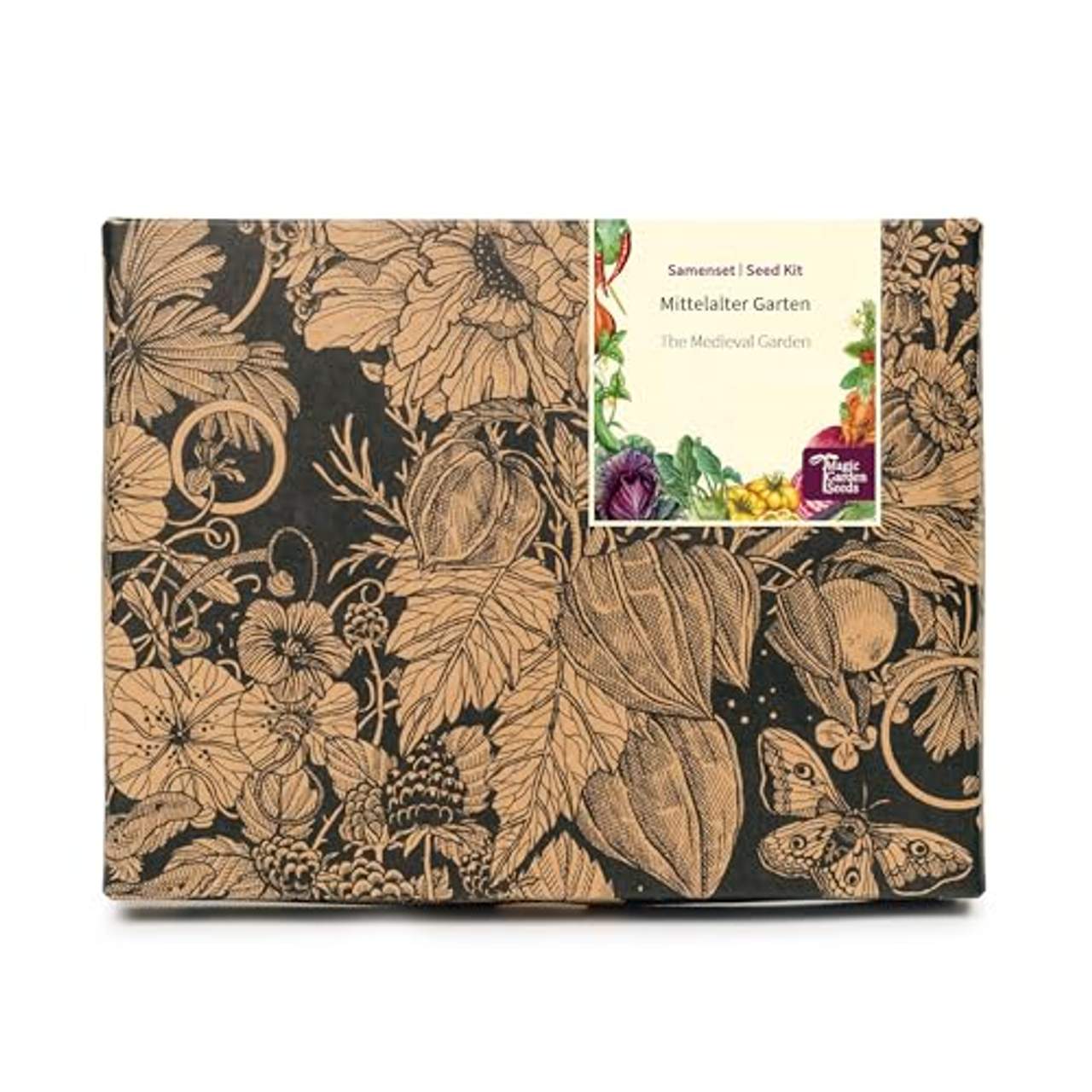 Das „Mittelalter Garten Samen-Geschenkset mit 7 Pflanzen für den mittelalterlichen Nutzgarten“ von Magic Garden Seeds ist ein mittelalterliches Garten-Samen-Geschenkset mit sieben Pflanzen für den mittelalterlichen Nutzgarten. Es enthält Pfefferminze, Weinraute, Liebstöckel, Mangold ‚Smooth Silver‘, Pastinake ‚Half-Long‘, Mispel und Einkorn. Jede Sorte wird mit einem Samentütchen pro Packung und einer ausführlichen Aussaat-, Anbau- und Pflegeanleitung von Magic Garden Seeds geliefert. Bei den Samen handelt es sich um keimstarke und widerstandsfähige Sorten ohne Hybridsamen.