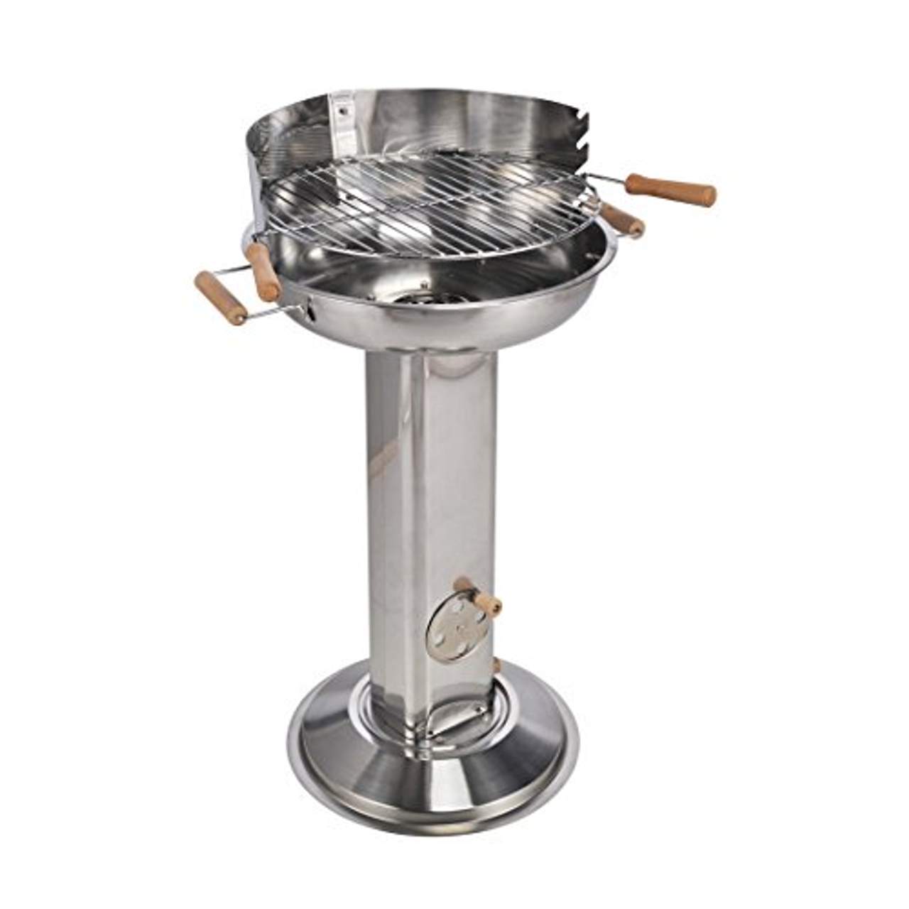 Haushalt International Säulengrill aus EdelstahlHI 60178 Edelstahl Säulengrill Rundgrillhöhenverstellbarer Grillrostmit Belüftungshebel, Ascheauffangbehäler und WindschutzMaße ca. H83xT43xB65cmDurchmesser Grillrost ca. 38cmDurchmesser Feuerkorb ca. 43cmGrillrosthöhe verstellbar 72 - 82,5 cmMaterial Edelstahl, Grillrost aus verchromten Stahlmit Belüftungshebel für optimales Glühverhalten der GrillkohleKaminzugeffekt, Belüftungsschacht für schnelle Glutverstellbarer Lüftungsschieber zum Regulieren der Luftzufuhr, wird mehr Sauerstoff zugeführt, kann die Glut schneller durchglühenmit Ascheauffangbehälter und EntleerungsvorrichtungGewicht ca. 4,5kg