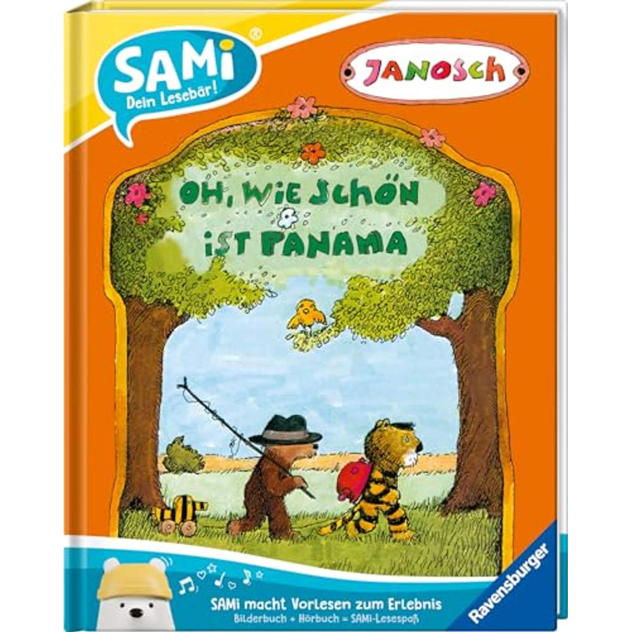 Ravensburger SAMi - Oh, wie schön ist PanamaErlebe mit SAMi ein Lese-Abenteuer! »Wenn man einen Freund hat, braucht man sich vor nichts zu fürchten!« Der kleine Bär und der kleine Tiger sind dicke Freunde. In ihrem Haus am Fluss haben sie es gemütlich. Eines Tages findet der kleine Bär eine Kiste, die von oben bis unten nach Bananen riecht.Auf der Kiste steht »Panama«. Also machen sich der kleine Bär und sein Freund, der kleine Tiger, auf den Weg dorthin, in das Land ihrer Träume. Lesebär SAMi nicht enthalten. Muss separat erworben werden.