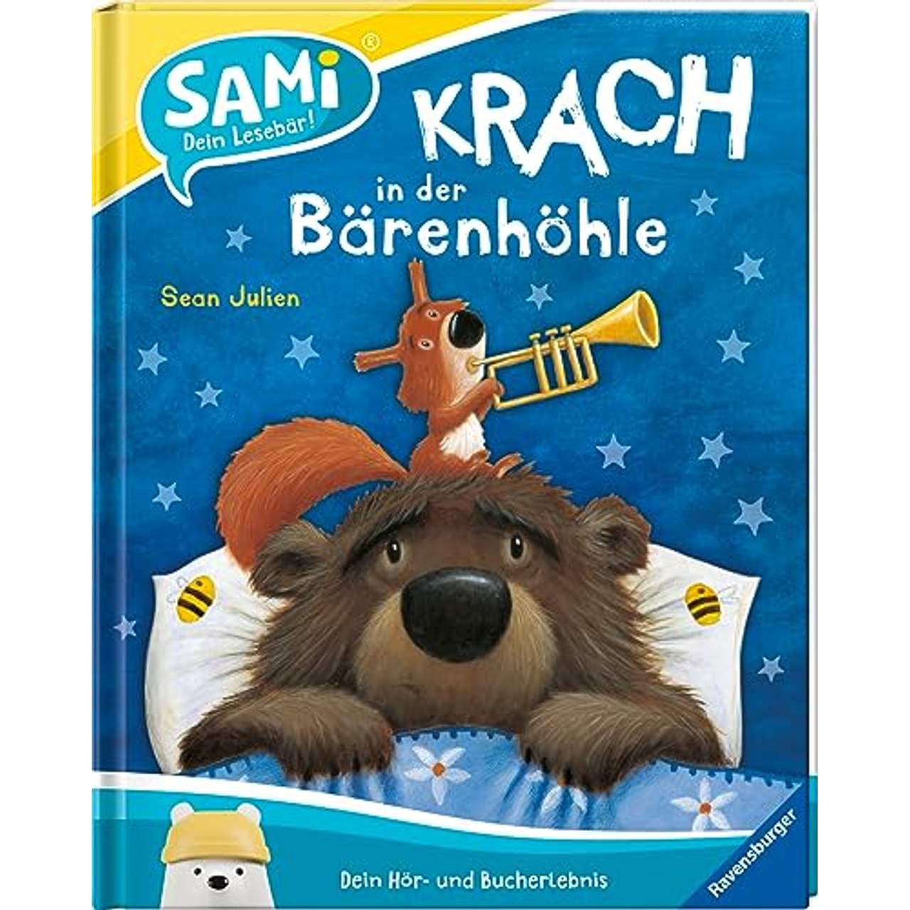 Ravensburger SAMi - Krach in der BärenhöhleEichhörnchen und Bär sind fast bereit für ihren langen Winterschlaf. Aber es gibt ein Problem - Eichhörnchen ist einfach nicht müde. Viel lieber spielt es draußen im Schnee, möchte Geschichten hören, Toben und Krach machen. Sehr zum Ärger von Bär, der endlich seine Ruhe haben und schlafen möchte. Nachdem sich die zwei Freunde verkracht haben und Eichhörnchen sich im Schnee verirrt, merkt Bär, dass es besser ist, den Schlaf und nicht einen guten Freund zu verlieren.Mit SAMi - dein Lesebär tauchen Kinder ab 3 Jahren selbstständig in die Welt der Bilderbücher ein. Einfach ans Buch gesteckt, liest SAMi die Geschichte vor, während das Kind durch das Buch blättert. Dabei erkennt SAMi genau, auf welcher Seite sich das Kind befindet.Das Kind kann auf diese Weise frei im Buch vor- und zurückblättern und seine Lieblingsgeschichten beliebig oft anhören. So fördert SAMi die Selbstbeschäftigung und regt die Fantasie der Kinder an. SAMi kann verschiedene Bücher zu den unterschiedlichsten Themengebieten vorlesen:Neben wichtigen Themen aus dem Kinderalltag (z.B. Freundschaft, Streit), gibt es auch witzige Abenteuer und spannende Geschichten mit den Helden aus Filmen und Serien.