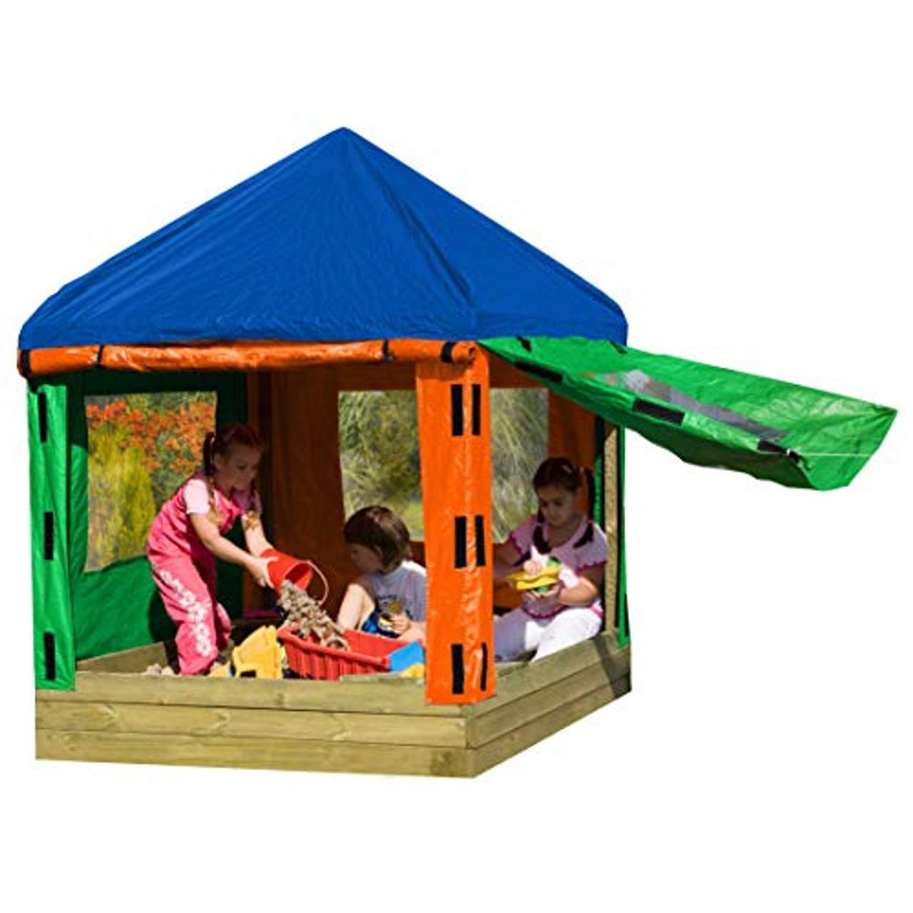 153 x 153 cm großer Sandkasten mit PavillonSandkasten mit Holzgerüst und Plane