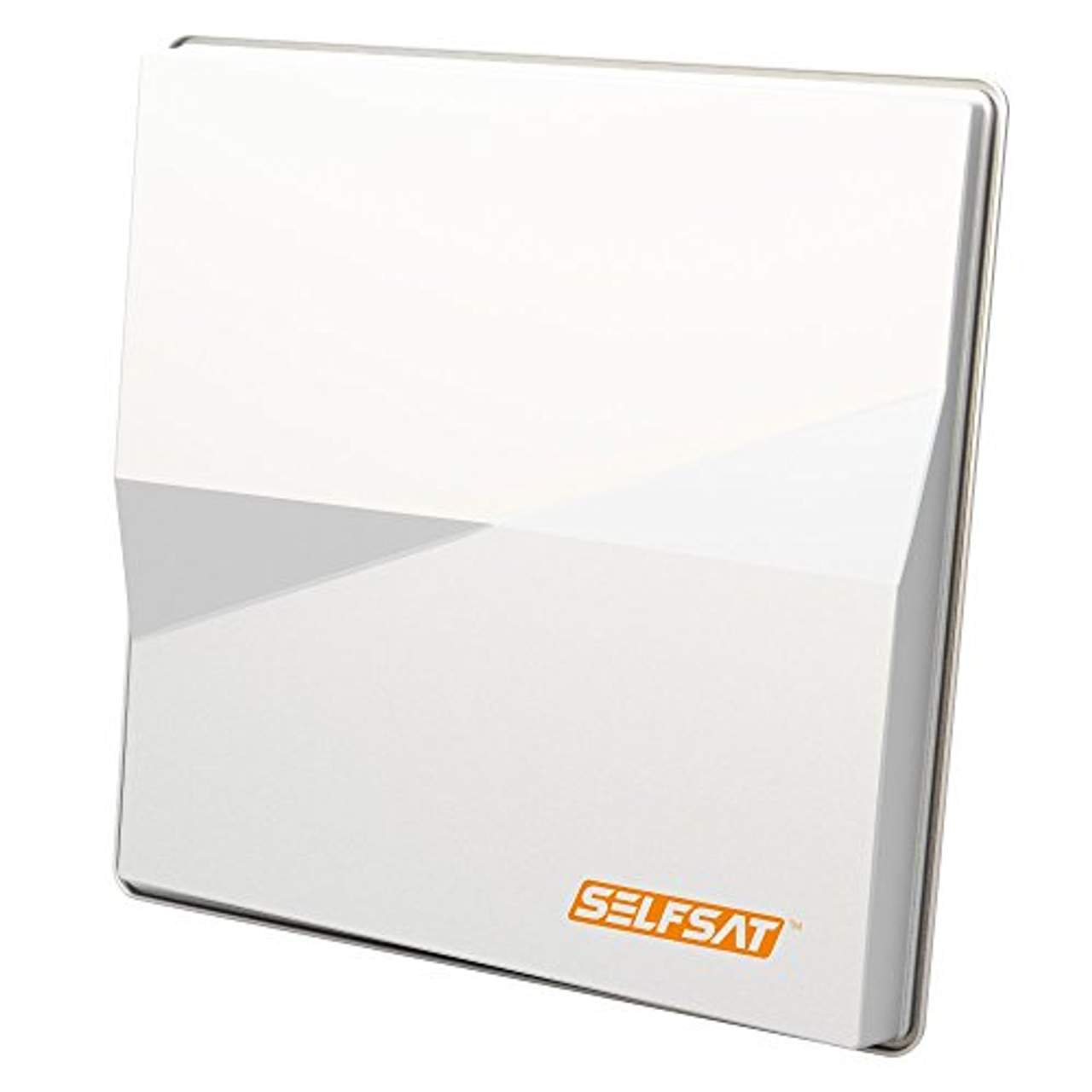 Selfsat H50M4 Quad Flachantenne (2 Satelliten gleichzeitig)Das ist die neue SELFSAT H50M Flachantenne. Sie ist die weltweit erste flache Satellitenantenne zum Empfang von 2 Orbit-Positionen. Das flache und innovative Design der Antenne sorgt für eine unauffällige Installation an einer Hauswand oder einem Mast. Sie können z.B. folgende Satellitenkombinationen empfangen: Astra 19,2° & Hotbird 13° oder Astra 4A & Thor oder Astra 23,5° und Astra 19,2°. Der Wechsel der Satelliten erfolgt automatisch per DiSEqC Steuerung. Die Empfangsleistung dieser Flachantenne entspricht der zweier hochwertiger 60cm-Spiegel. Damit lassen sich problemlos z.B. Astra und Hotbird empfangen. Im Gegensatz zu den herkömmlichen Satellitenschüsseln ist die Selfsat H50M aufgrund ihrer rechteckigen und flachen Form besonders unauffällig.Dies sorgt für eine schönere und unscheinbare Installation. Die mitglieferte Montagehalterung ermöglicht die Montage der Selfsat H50M wahlweise an einer Wand oder an einem Balkongeländer.