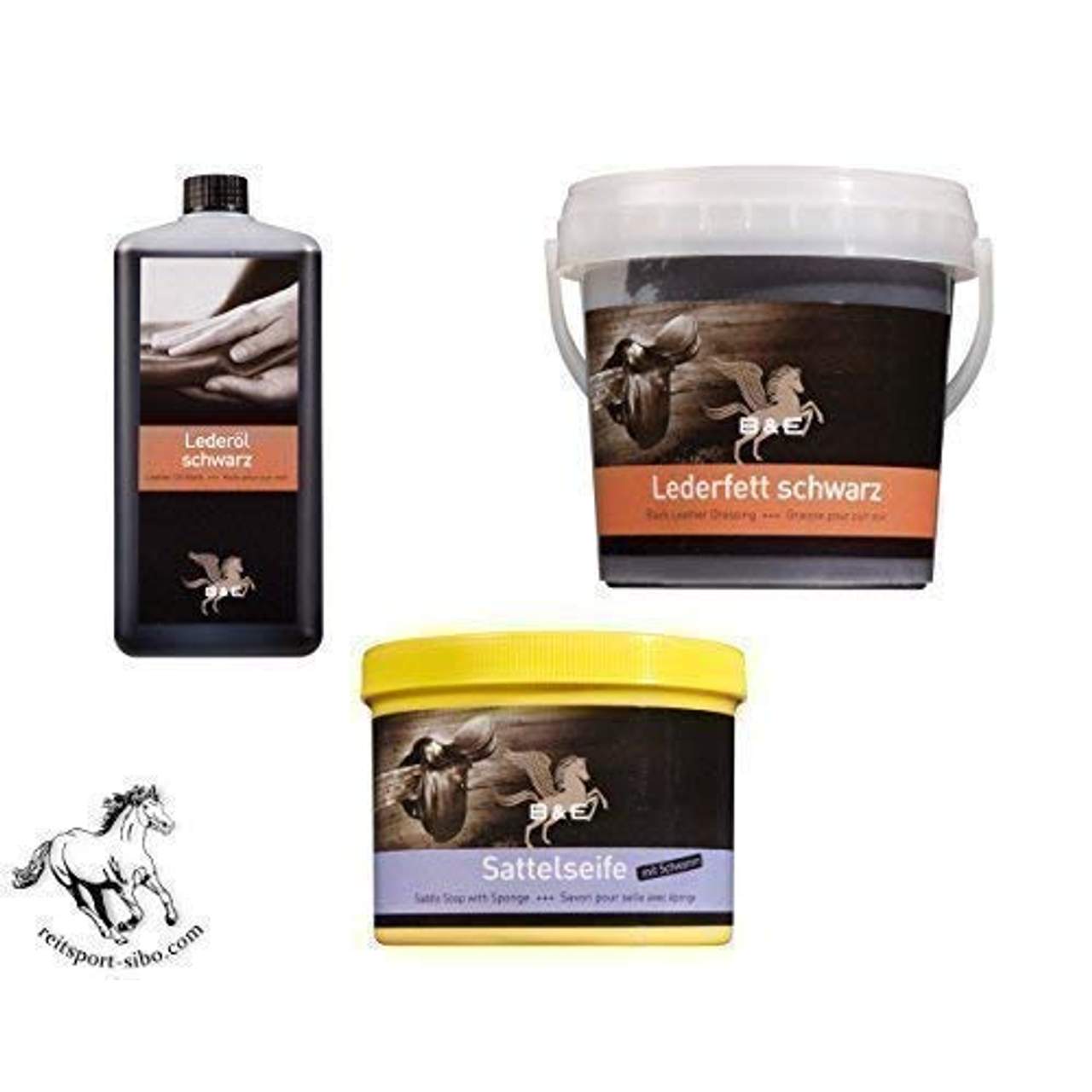 Bei diesem Produkt handelt es sich um ein Sattelseifenset namens „Mega Sparset Lederpflege schwarz“ der Marke „B u E“. Es beinhaltet: 500 ml Lederöl schwarz, 500 ml Sattelseife mit Schwamm und 500 ml Lederfett schwarz. Dieses Set ist perfekt für die Reinigung, Pflege und den Schutz Ihres Leders!