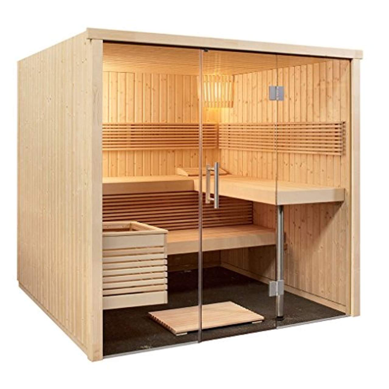 - Hochwertige Konstruktion: Die 214 x 210 x 201 cm große Panorama-Sauna ist aus hochwertigen Materialien wie Fichtenholz und ESG-Sicherheitsglas gefertigt, so dass die Sauna viele Jahre lang ohne