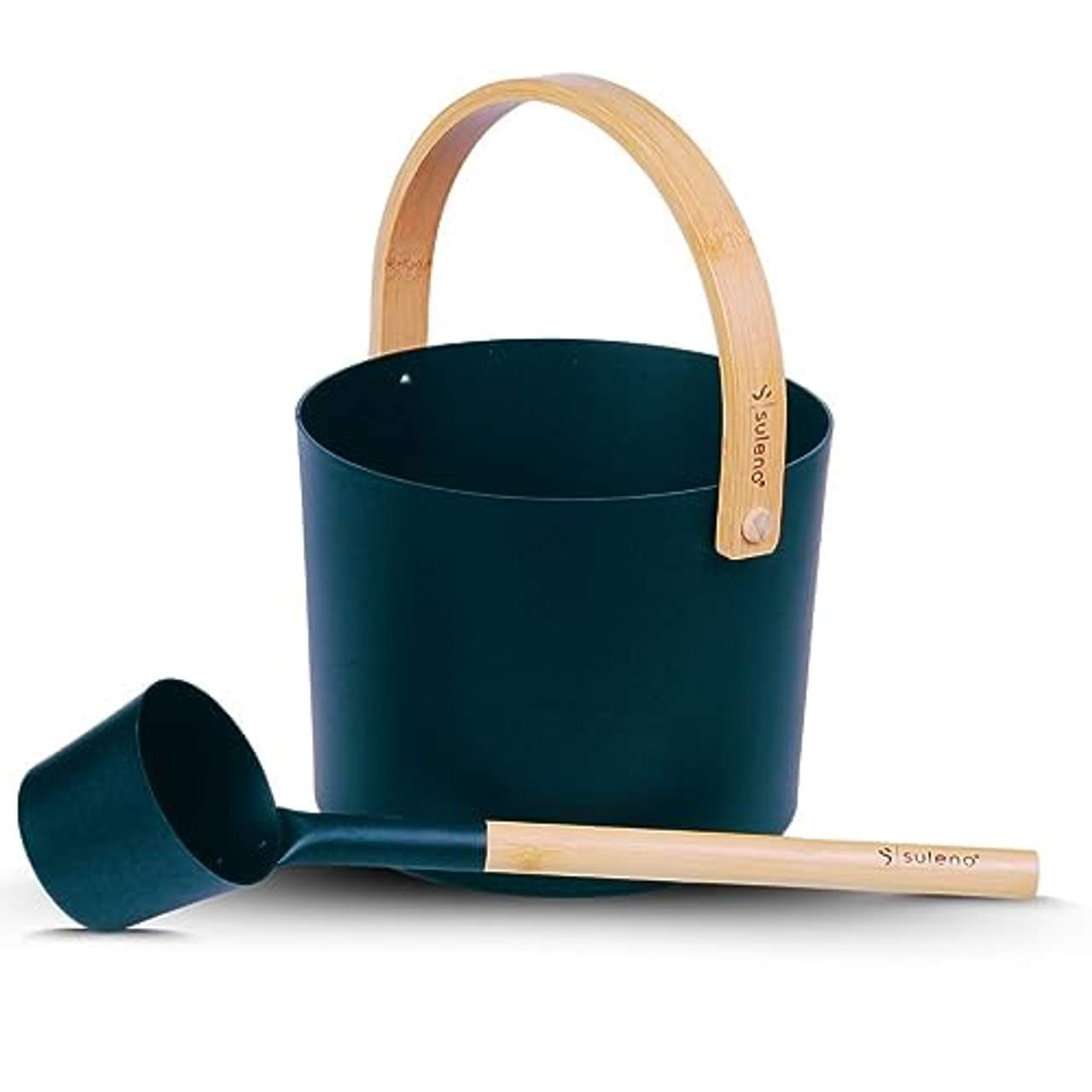 Suleno Sauna Set KjellSaunakübel Set Kjell Aufgusskübel und Aufgusskelle für knackige Aufgüsse Der Aufgusskübel ist in jedem Saunaraum das unverzichtbare Accessoire. Er beinhaltet das notwendige Wasser für den Aufguss. Unser Aufgusskübel ist aus hochwertigen Aluminium gefertigt und wurde im Anschluss pulverbeschichtet.Der Henkel aus Bambus am Kübel lässt sich sehr gut greifen und liegt dadurch sicher in der Hand. Mit einem Fassungsvermögen von 5 Litern genießen Sie mehrere Aufgüsse ohne nachzufüllen. Die Aufgusskelle mit einem Bambusgriff ist im Lieferumfang enthalten. Details zum Saunakübel Set Kjell: Fassungsvermögen: 5 Liter Hochwertiges Aluminium pulverbeschichtet Maße des Kübels: 24 x 19 cm Maße der Kelle: 42 cm lang Stabil, hitzebeständig und langlebig Auslaufsicher Lieferumfang Saunakübelset Kjell: 1 x Aufgusskübel 1 x Aufgusskelle