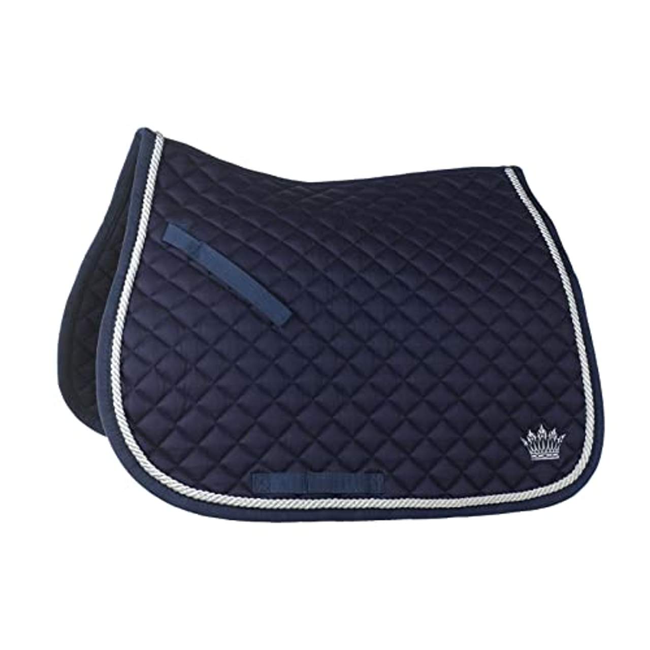Die horze Silver Cord Vielseitigkeitsschabracke ist eine Vielseitigkeitsschabracke der Marke „horze“. Sie hat eine rautenförmige Steppung und eine ergonomische Form, die dem Pferd zusätzlichen Komfort bietet. Außerdem sorgt sie für mehr Entlastung im Widerristbereich. Die Schabracke ist mit einer silbernen Kordel an den Rändern und einer silbernen gestickten Krone in der hinteren Ecke als Emblem versehen. Das Produkt hat eine Rückenlänge von 23" und eine Seitenbreite von 20". Es besteht aus 100 % Baumwolle und enthält Schaumstoff und Polyfill als Füllung sowie ein Baumwollfutter.