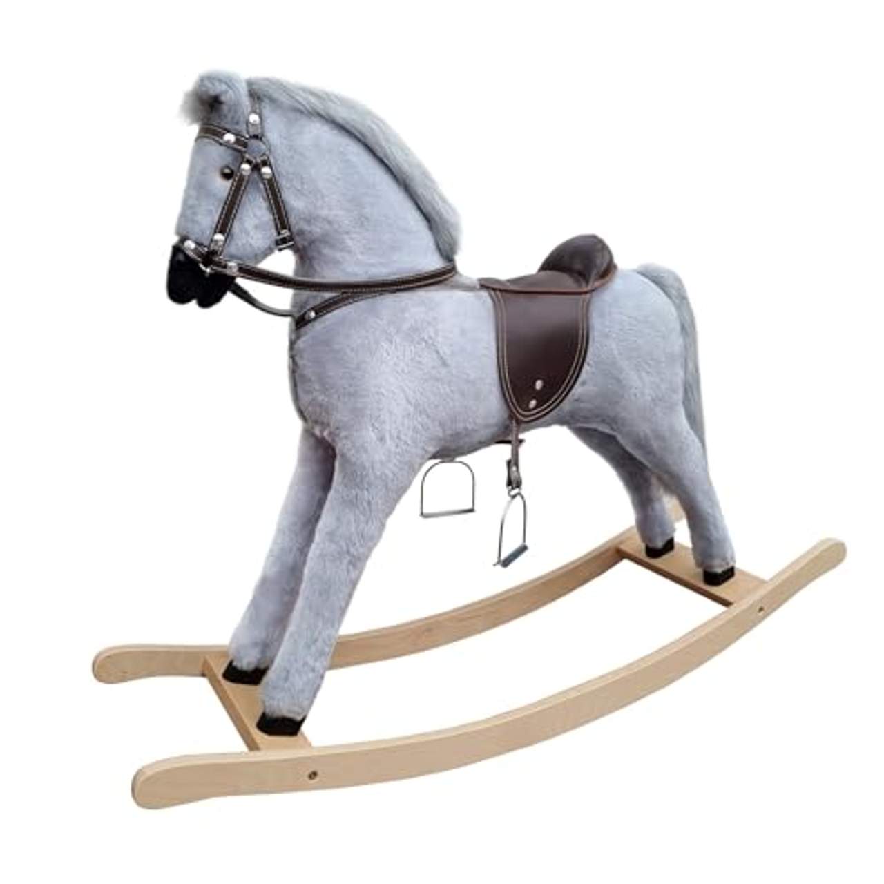 - Schönes Design: Das Schaukelpferd kommt in einer schönen grauen Schimmelfarbe mit einem Plüschbezug aus 100% Polyester. Außerdem hat es Kufen aus Buchensperrholz für zusätzliche Stabilität und Haltbarkeit.