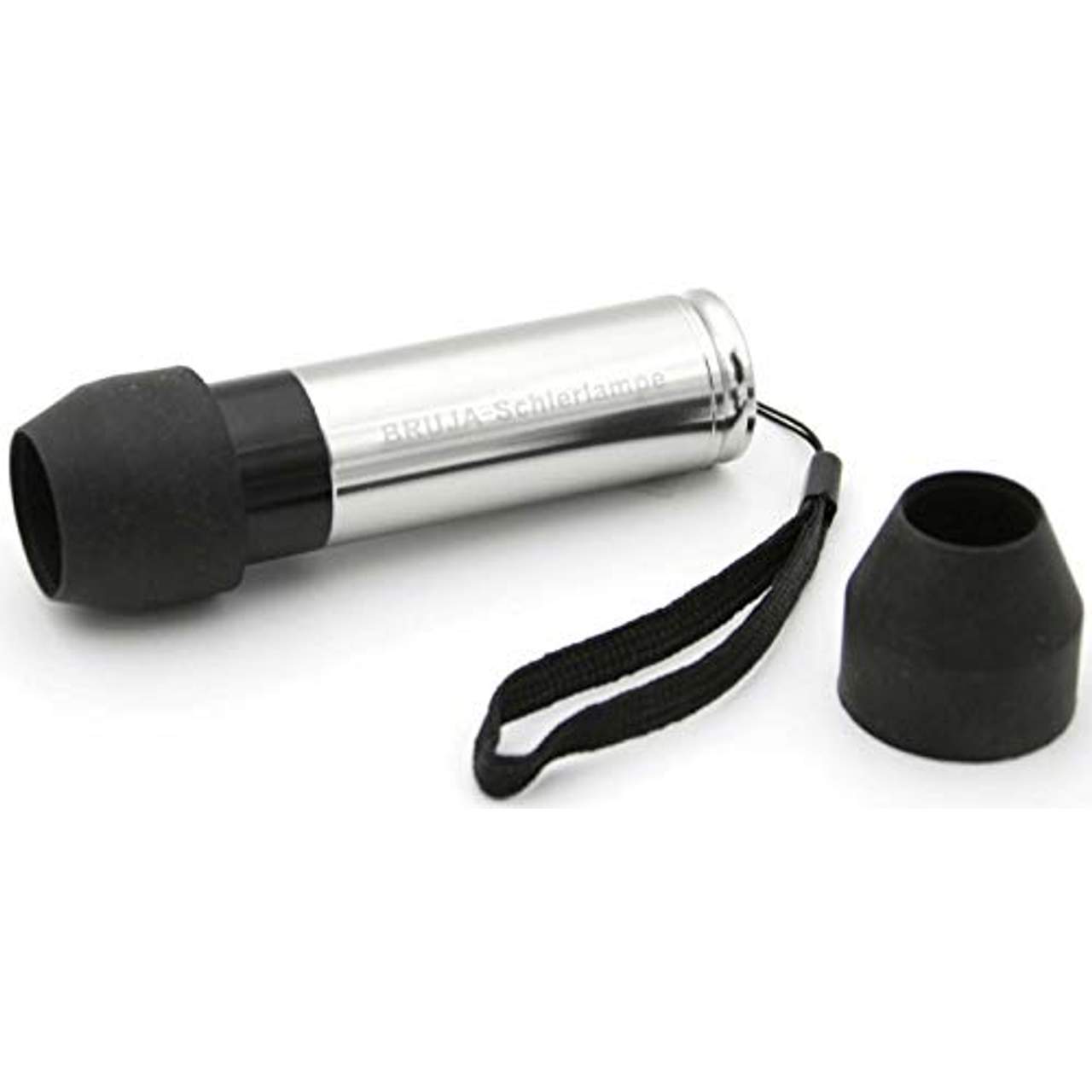 Bruja COB-LED-SchierlampeProduktinformationen „BRUJA COB-LED-Schierlampe“ Die neue Ausführung von BRUJA mit innovativer COB-LED-Technik. Die sehr leistungsstarke und gleichzeitig stromsparende COB-LED (5 Watt) erzeugt mit 160 Lumen ein noch helleres Licht als das Vorgängermodell. Mit 2 Gummiaufsätzen für das behutsame Schieren von verschieden großen Bruteiern ab 18 mm Durchmesser. Durch den Batteriebetrieb mit handelsüblichen 3 x 1,5 Volt Micro-Batterien AAA (3 Stück Marken-Batterien sind im Lieferumfang enthalten), ist die Schierlampe sehr handlich und unabhängig in der Anwendung. Das stabile Metall-Gehäuse ist wasser- und stoßfest. Besondere Vorteile durch LED: Keine nennenswerte Wärmeentwicklung – daher auch für empfindliche Bruteier bestens geeignet Wesentlich unempfindlicher gegen Stöße und Erschütterungen als eine Glühlampe Lieferumfang: Schierlampe 2 Gummiaufsätze 3 Marken-Batterien Handschlaufe Bedienungsanleitung Aufbewahrungsbox Gewicht: nur 88 g | Länge: 9,6 cm Hinweise zur Batterieentsorgung: Im Zusammenhang mit dem Vertrieb von Batterien oder mit der Lieferung von Geräten, die Batterien enthalten, sind wir verpflichtet, Sie auf Folgendes hinzuweisen: Sie sind zur Rückgabe gebrauchter Batterien als Endnutzer gesetzlich verpflichtet.Sie können Altbatterien, die wir als Neubatterien im Sortiment führen oder geführt haben, unentgeltlich an unserem Versandlager (Versandadresse) zurückgeben. Bedeutung der Batteriesymbole: Das Symbol der durchgekreuzten Mülltonne bedeutet, dass die Batterie nicht in den Hausmüll gegeben werden darf.Pb = Batterie enthält mehr als 0,004 Masseprozent Blei Cd = Batterie enthält mehr als 0,002 Masseprozent Cadmium Hg = Batterie enthält mehr als 0,0005 Masseprozent Quecksilber Bitte beachten Sie die vorstehenden Hinweise.