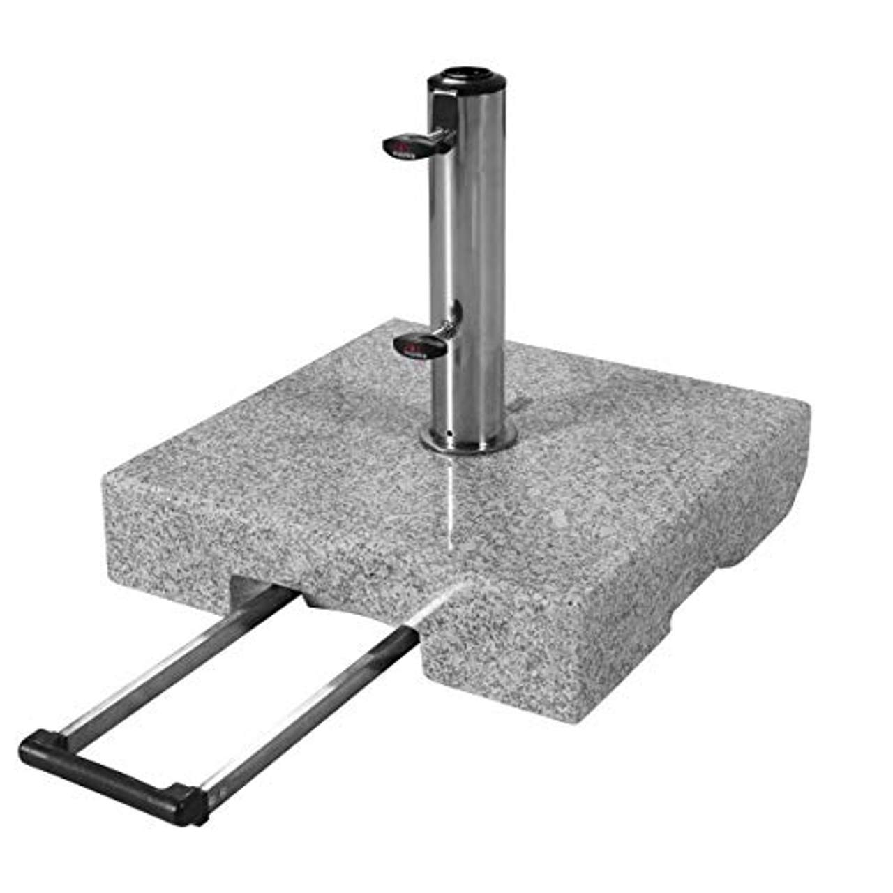 Stabilität: Der Granit-Trolleyfuß hat ein Gewicht von ca. 50 kg und bietet Sonnenschirmen mit einem Durchmesser von bis zu 350 cm Stabilität, auch bei starkem Wind.