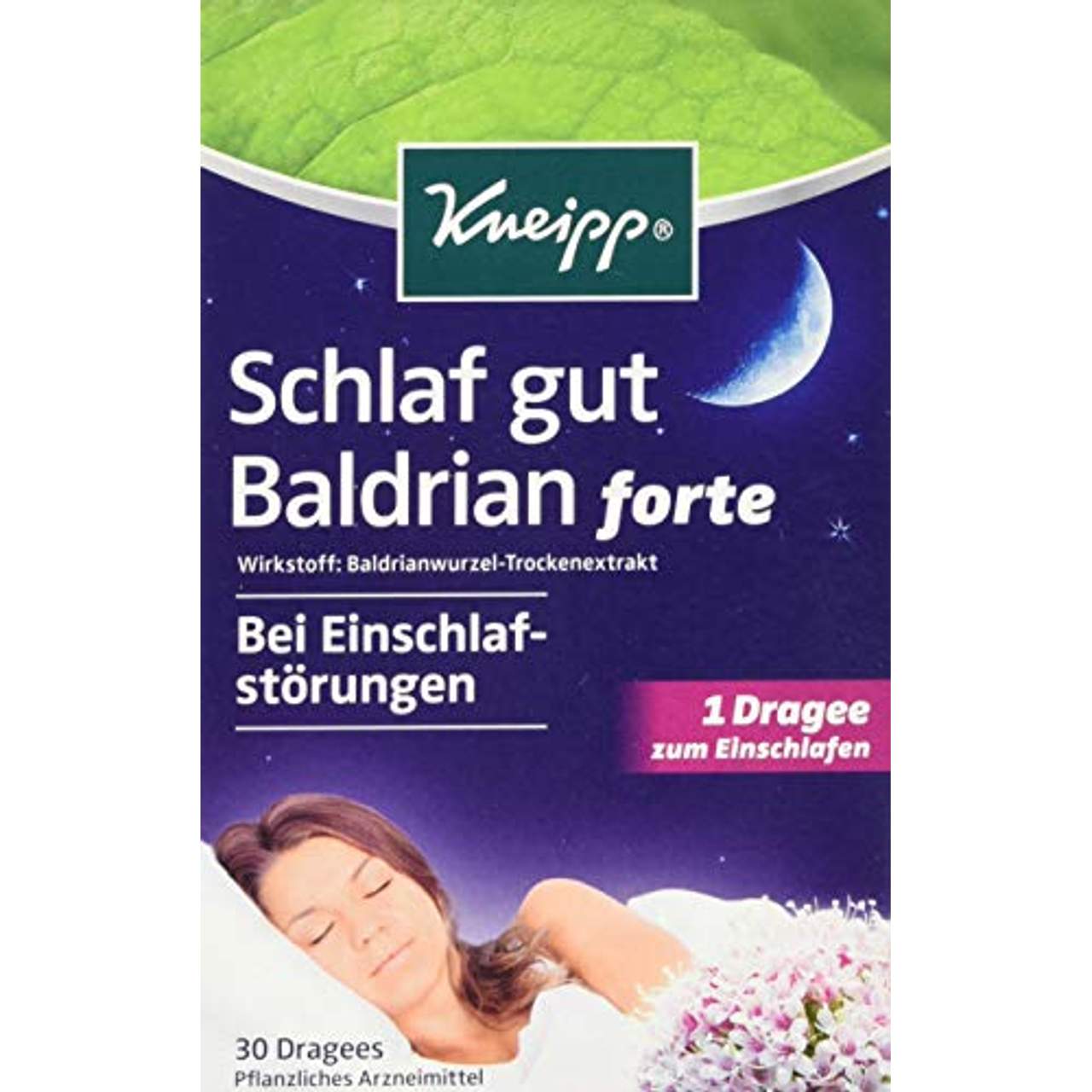 Kneipp Schlaf gut Baldrian fortePZN: 10032662 Kneipp Schlaf gut Baldrian forte 30 Tabletten Schlafstörungen sind häufig die Folge von Alltagsbelastungen und Stresssituationen wie Zeitmangel, Lärm, Konfliktsituationen oder Erfolgsdruck. Baldrian schirmt die Nerven vor äußeren Reizen ab und wirkt beruhigend.Kneipp Schlaf gut Baldrian forte hilft Ruhe zu finden und fördert das Einschlafen durch seine entspannende Wirkung ohne zu Gewöhnung oder Abhängigkeit zu führen.Es verhilft dem Körper zu dem für die Regeneration von Körper und Geist so wichtigen, erholsamen Schlaf.Kneipp Schlaf gut Baldrian forte enthält die wesentlichen Bestandteile der europäischen Baldrianwurzel in konzentrierter Form in einem Extrakt. (Verhältnis Droge zu Extrakt:3-6:1, Auszugsmittel: Ethanol 70% (V/V)). 1 Dragee enthält 450 mg Trockenextrakt aus Baldrianwurzel, entsprechend 1.350 mg bis 2.700 mg Baldrianwurzel. Anwendungsgebiet Pflanzliches Arzneimittel zur Beruhigung. Bei leichter nervöser Anspannung und bei Schlafstörungen. Dosierung Falls vom Arzt nicht anders verordnet, nehmen Erwachsene und Heranwachsende ab 12 Jahren:Bei leichter nervöser Anspannung 1mal täglich 1 überzogene Tablette, falls erforderlich bis zu 3mal täglich 1 überzogene Tablette. Zur Behandlung von Schlafstörungen eine halbe bis eine Stunde vor dem Schlafengehen 1 überzogene Tablette. Falls notwendig, kann zusätzlich 1 überzogene Tablette bereits früher im Verlauf des Abends eingenommen werden.Die höchste Tagesdosierung beträgt 4 überzogene Tabletten. Zusammensetzung 1 überzogene Tablette (= Dragee) Kneipp Schlaf gut Baldrian forte enthält: Wirkstoff: 450 mg Trockenextrakt aus Baldrianwurzel (3-6:1), Auszugsmittel: Ethanol 70% (V/V).Sonstige Bestandteile: Sprühgetrocknetes arabisches Gummi, Gebleichtes Wachs, Croscarmellose-Natrium, Carnaubawachs, Cellulosepulver, Maltodextrin, Macrogol 6000, Sucrose (Saccharose), Schellack (wachsfrei), Hochdisperses Siliciumdioxid, Stearinsäure (Ph. Eur.), Talkum, Titandioxid. Quelle: Kneipp